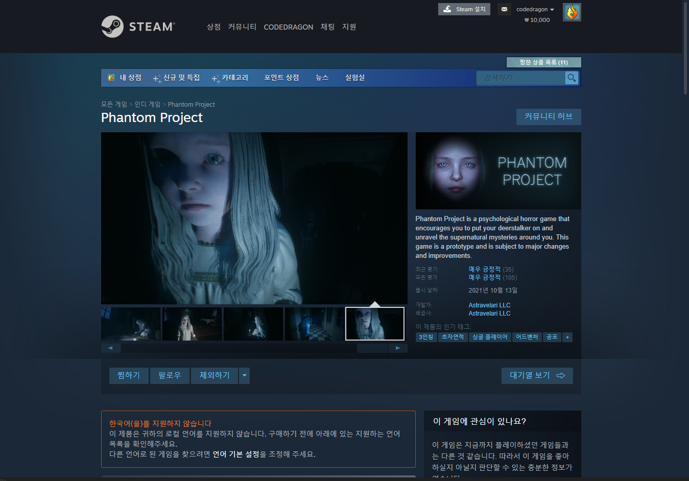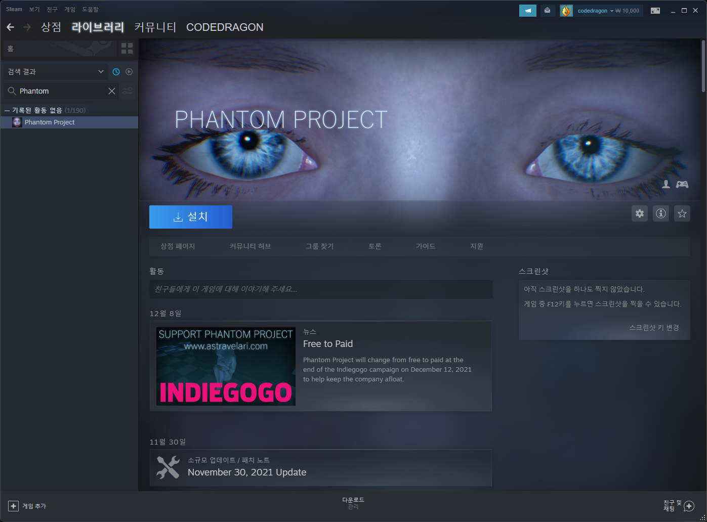 "Phantom Project" 스팀 페이지 입니다.