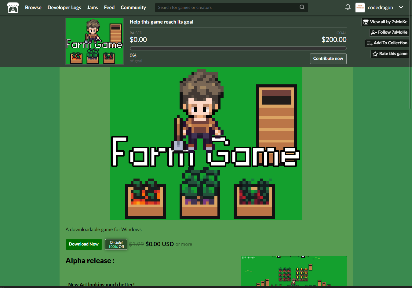 ₩2,352 -> ₩0(Free) Farm Game Alpha 무료로 받기 영구소장 - itch.io 잇치 닷 아이오 한시적 무료 소장하기