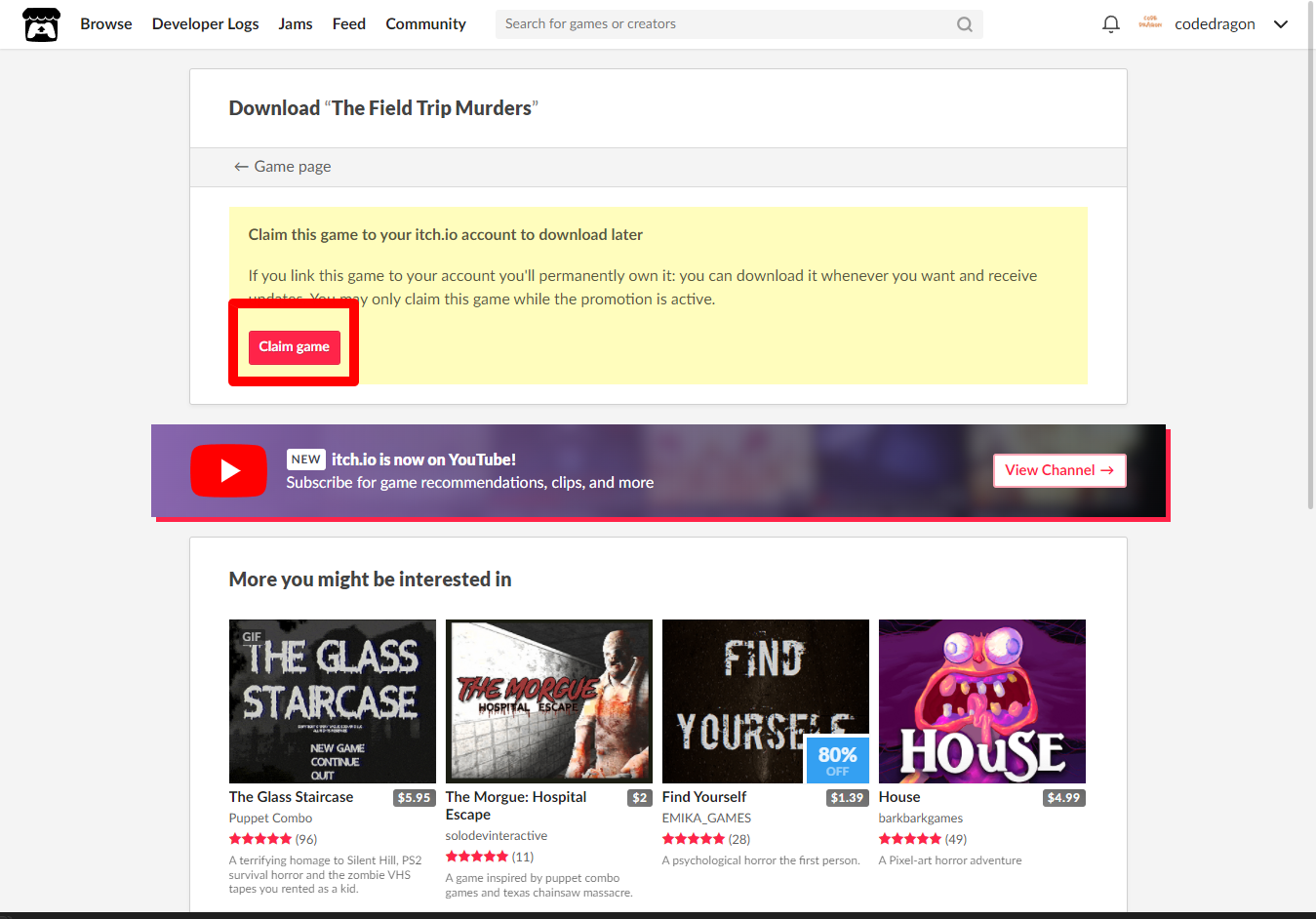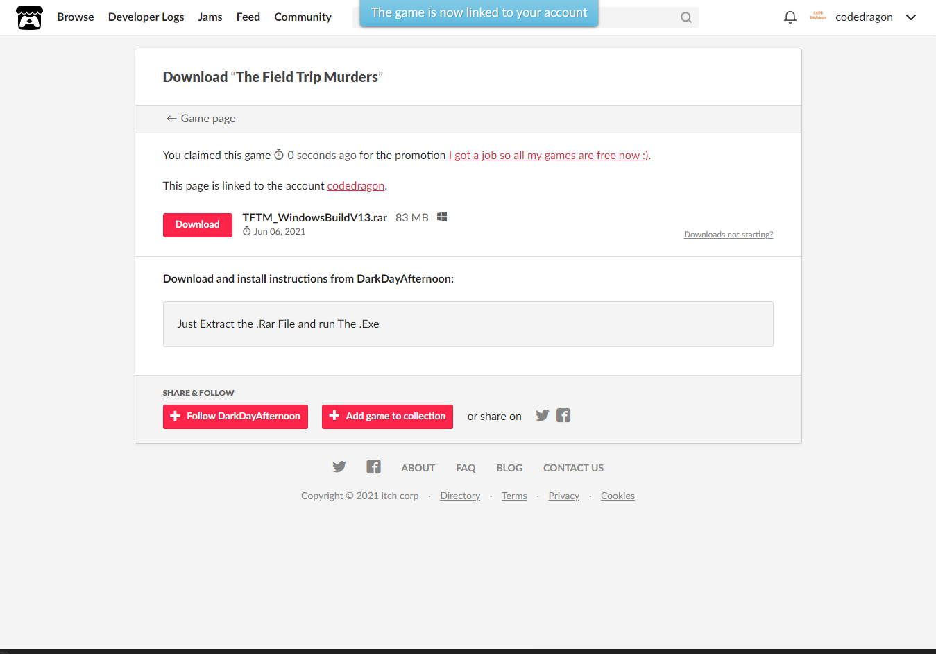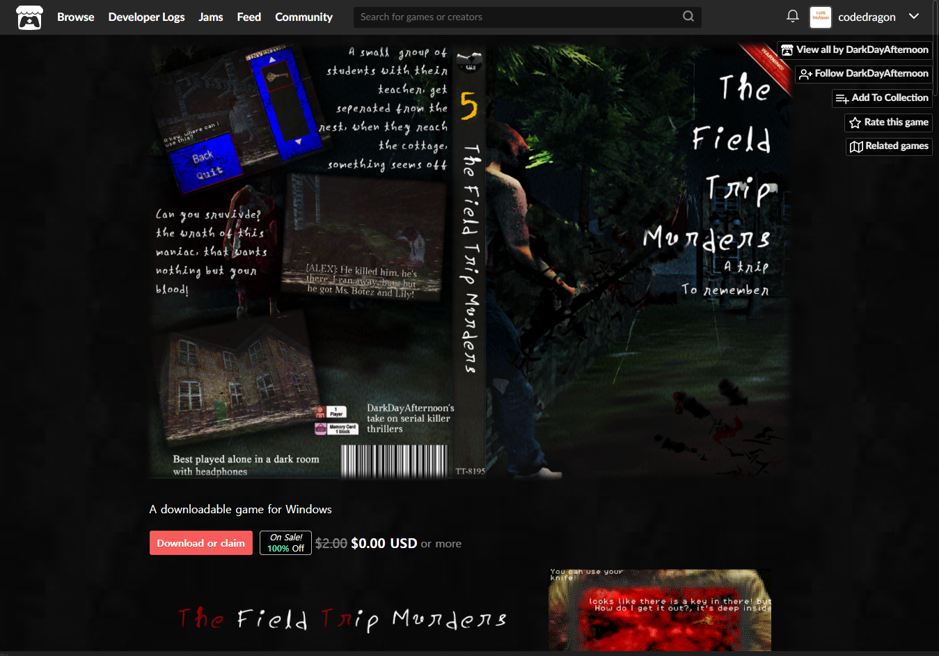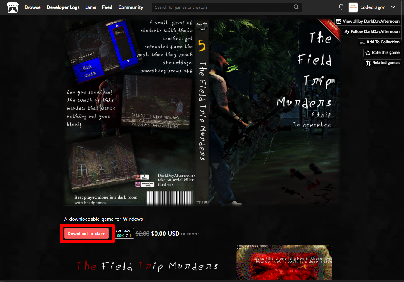 "The Field Trip Murders" 해당 항목에 있는 [Download] 버튼을 클릭하면 게임의 설치파일을 다운받을 수 있습니다.