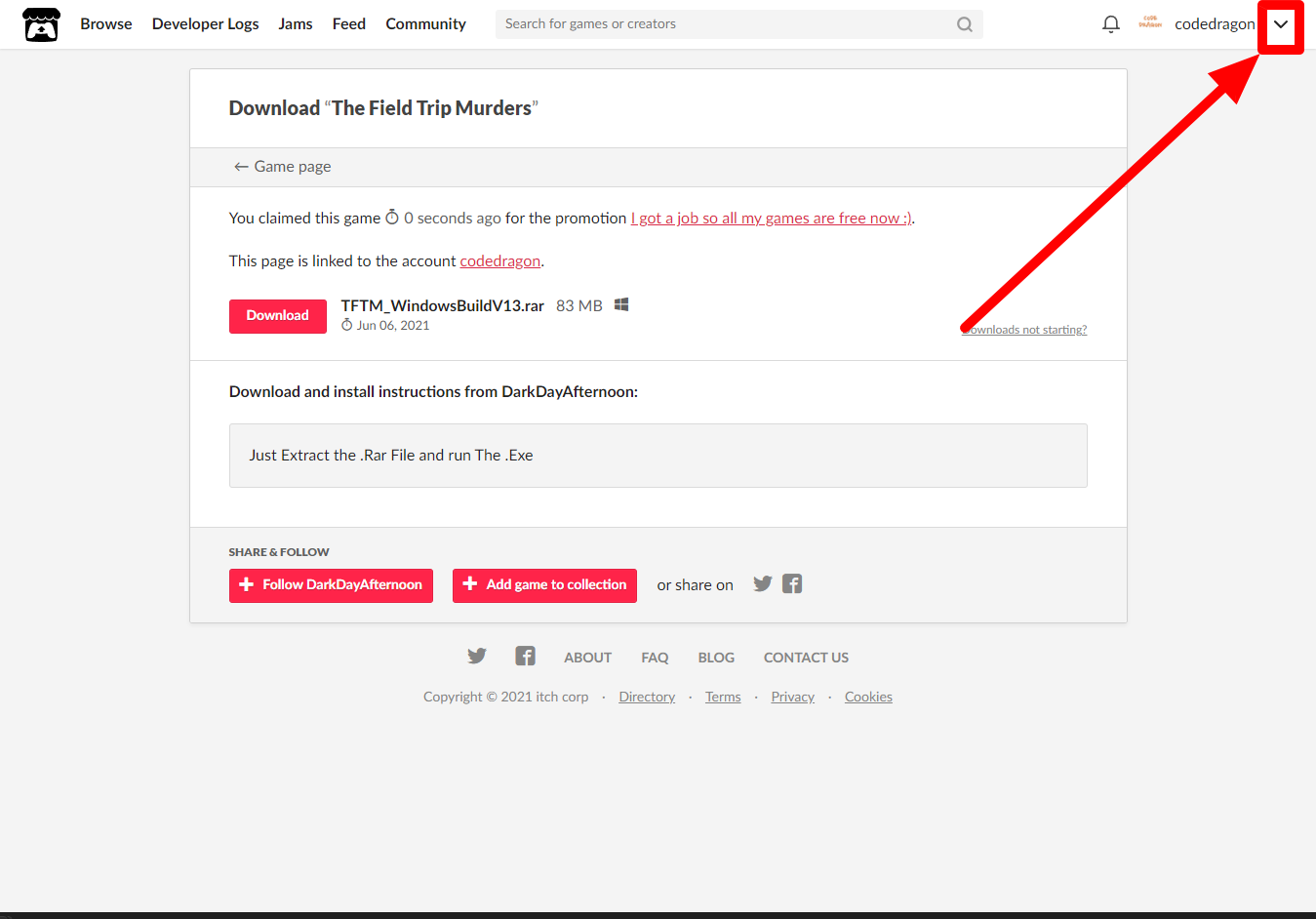 itch.io에서 받은 게임 확인해 설치파일 다운받아 보겠습니다.
