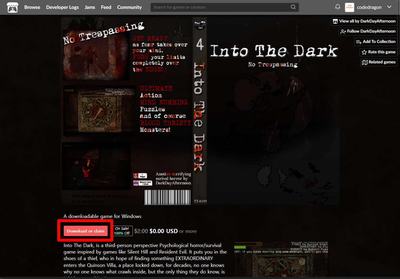 - "Into The Dark" 게임 페이지