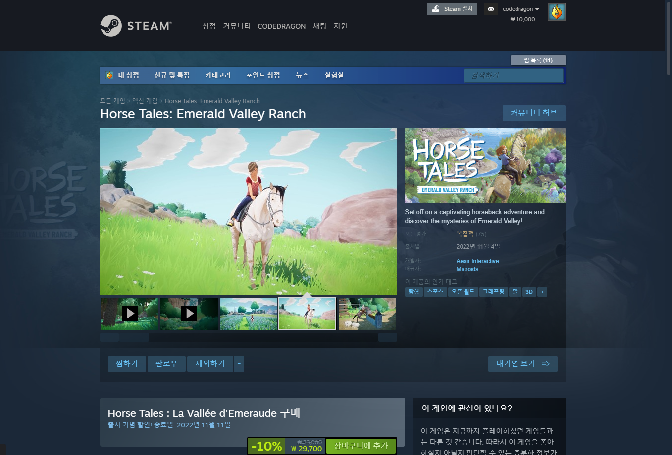 "Limited Digital Bonus - Horse Tales Emerald Valley Ranch" 게임페이지를 조금 내려준 후 [계정에 추가] 버튼을 클릭하면 게임라이브러리에 추가됩니다.