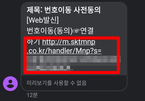 문자메시지로 번호이동 사전 동의 문자를 확인할 수 있습니다.