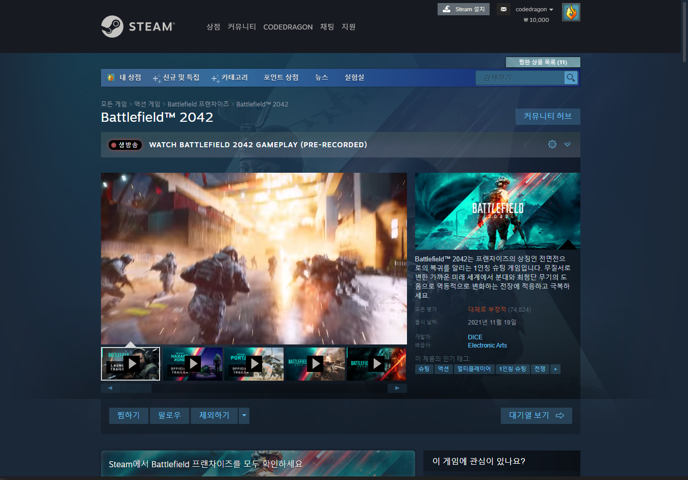 "Battlefield 2042" 게임페이지에 접속합니다.