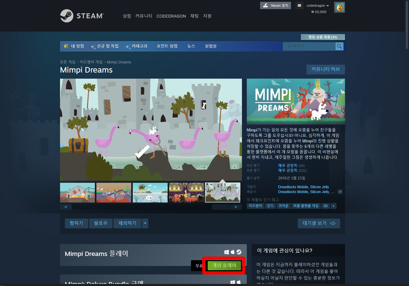 "Mimpi Dreams" 페이지를 내려 [게임 플레이]를 클릭하면 됩니다.