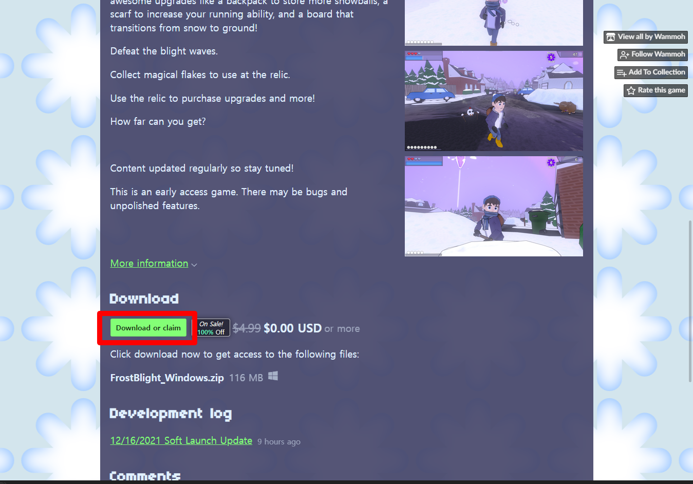 "Frost Blight" 해당 항목에 있는 [Download] 버튼을 클릭하면 게임의 설치파일을 다운받을 수 있습니다.