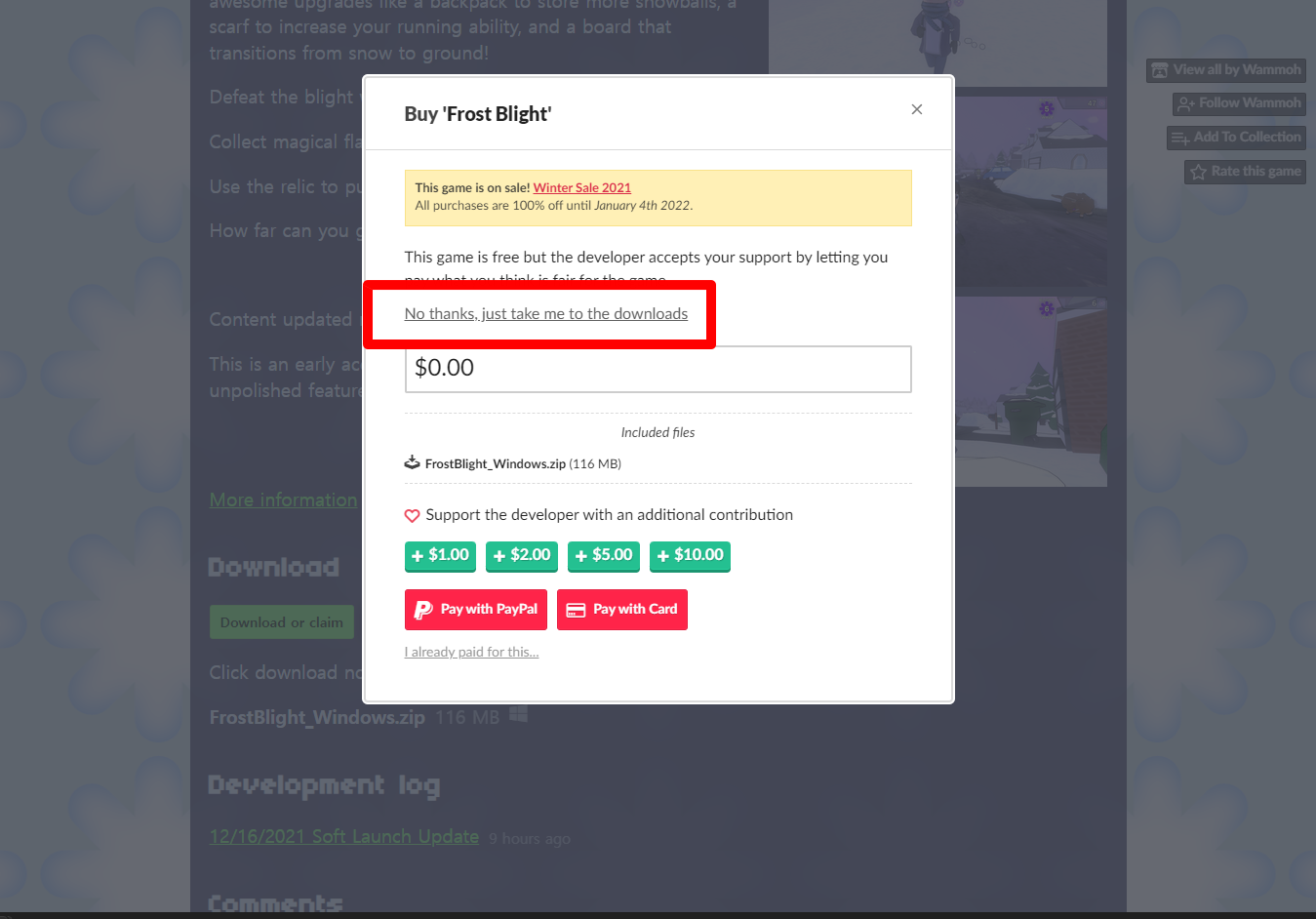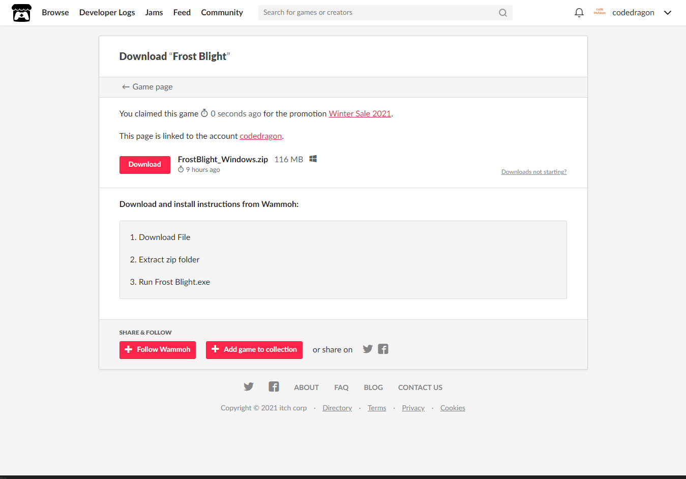"Frost Blight" 해당 항목에 있는 [Download] 버튼을 클릭하면 게임의 설치파일을 다운받을 수 있습니다.
