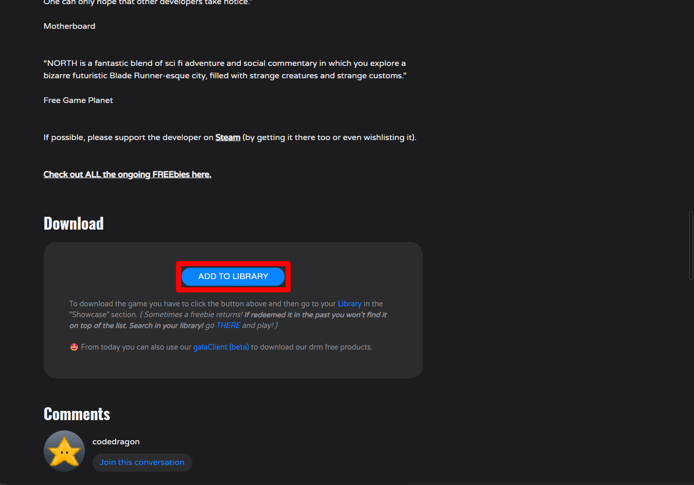 "NORTH" 페이지를 내려 [ADD TO LIBRARY]를 클릭합니다.