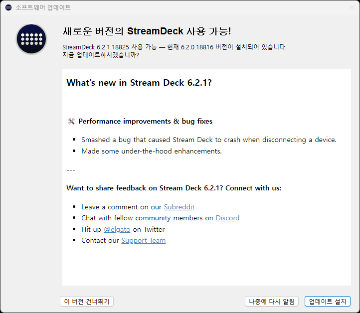 엘가토 스트림덱 소프트웨어 업데이트 - elgato STREAM DECK Software Update