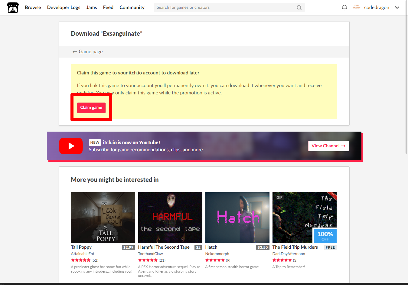 - "Exsanguinate" 게임 페이지