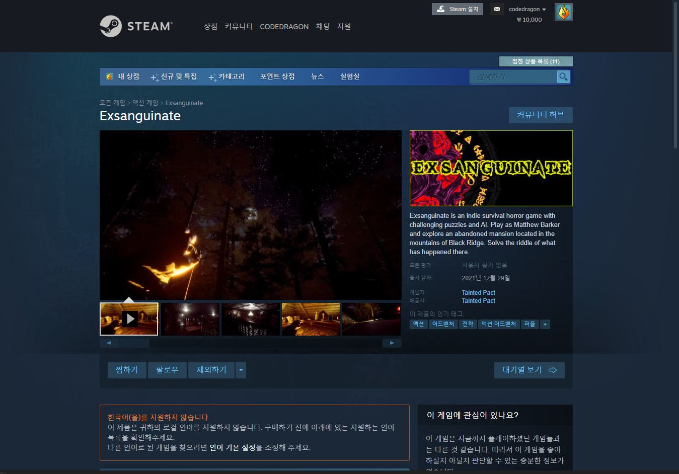 "공포 어드벤처" 게임인 "Exsanguinate" 입니다.