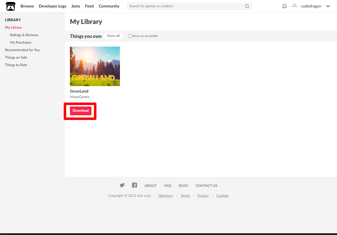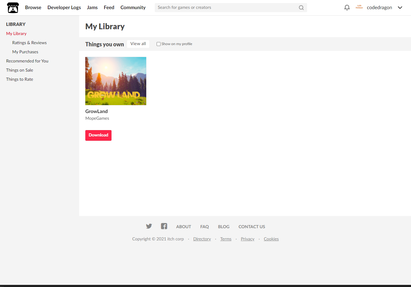 "My Lirary"에서 방금 받은 "GrowLand" 게임 항목을 확인할 수 있습니다.