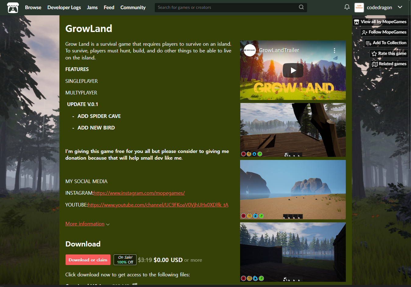 ₩3,788 -> ₩0(Free) GrowLand 그로우랜드 무료로 받기 영구소장 - itch.io 잇치 닷 아이오 한시적 무료 소장하기