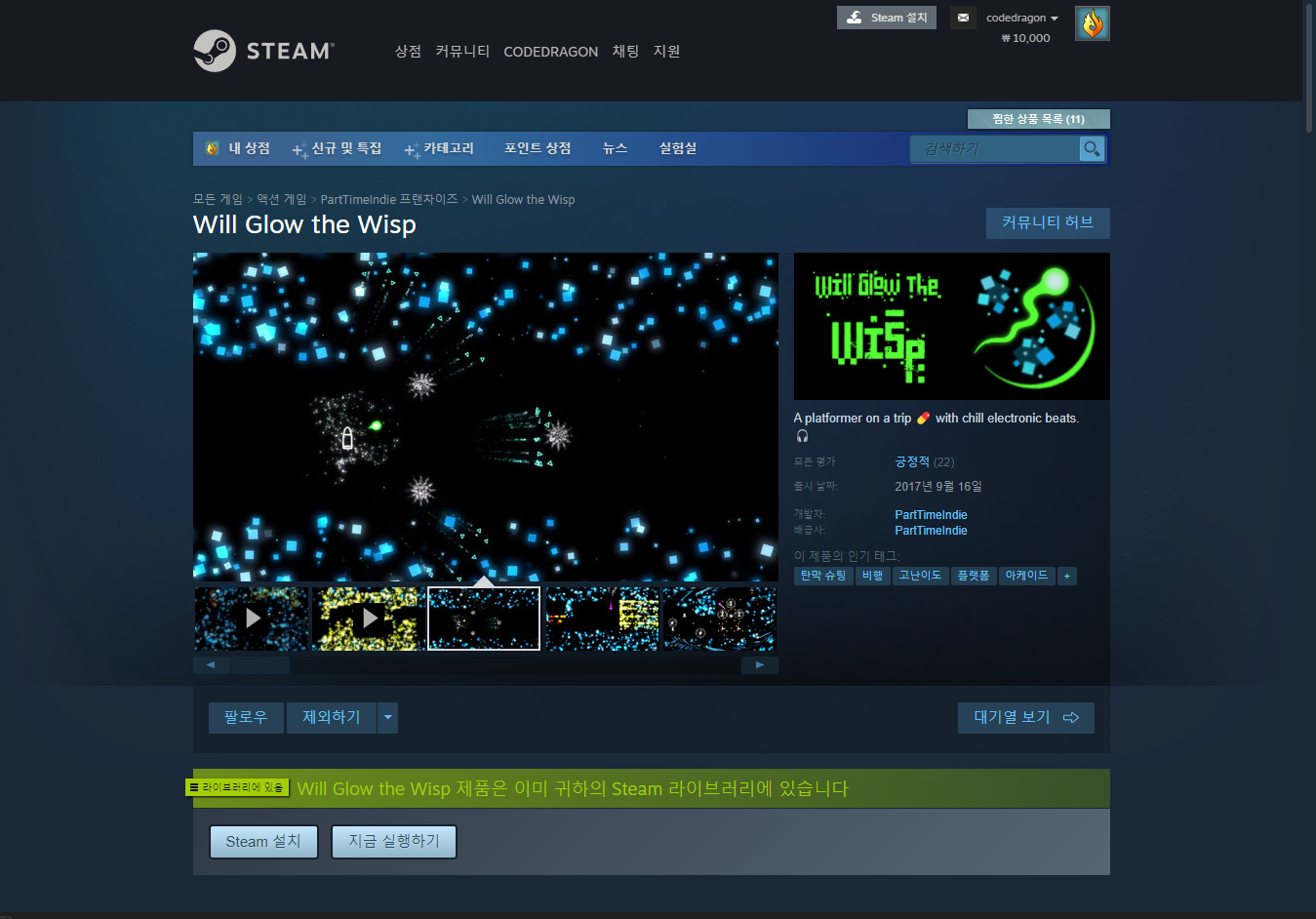 - "Will Glow the Wisp" - Steam 스팀 페이지