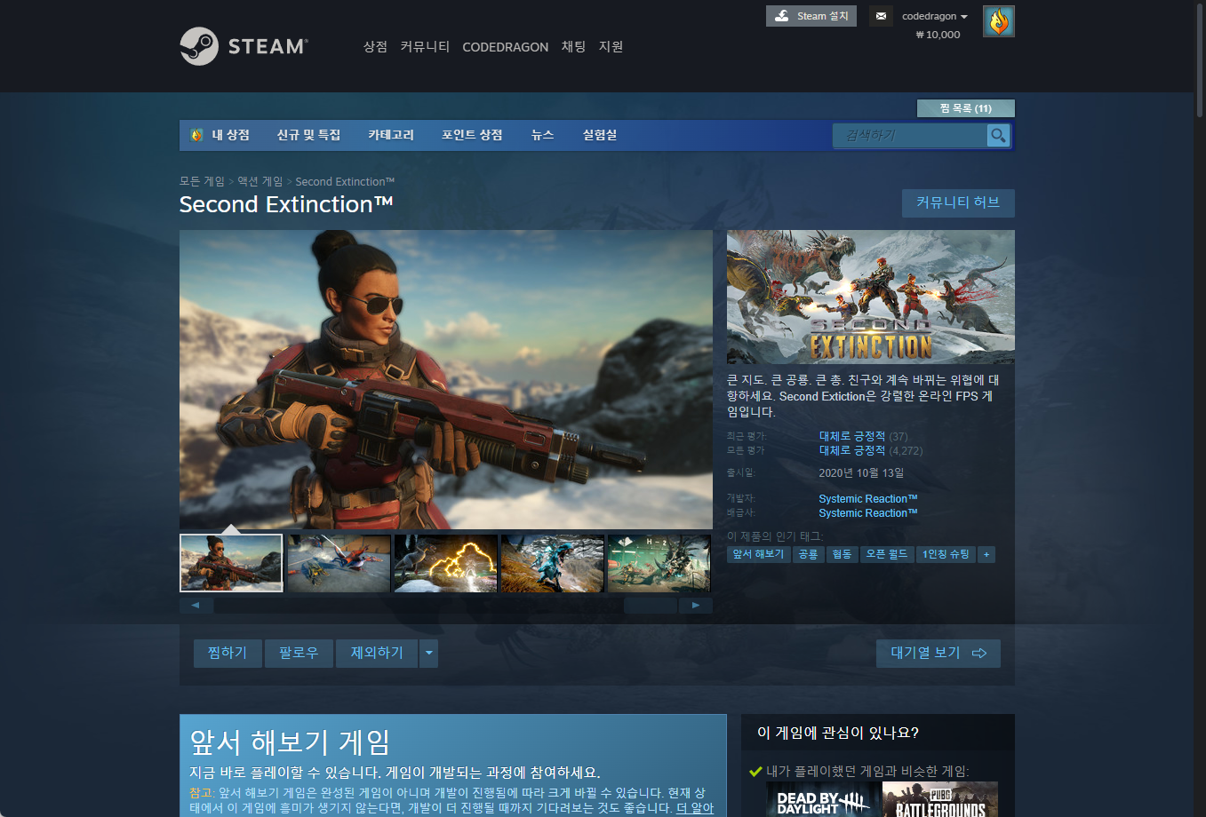 ₩26,000 -> ₩0(FREE) Second Extinction 세컨드 익스팅션 무료로 받기 영구소장; EGS 에픽 게임즈 epic games 한시적 무료 Get free copy