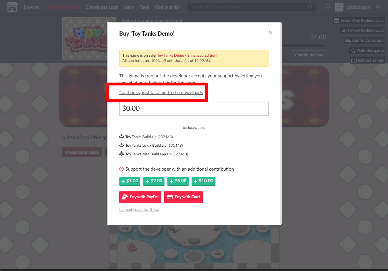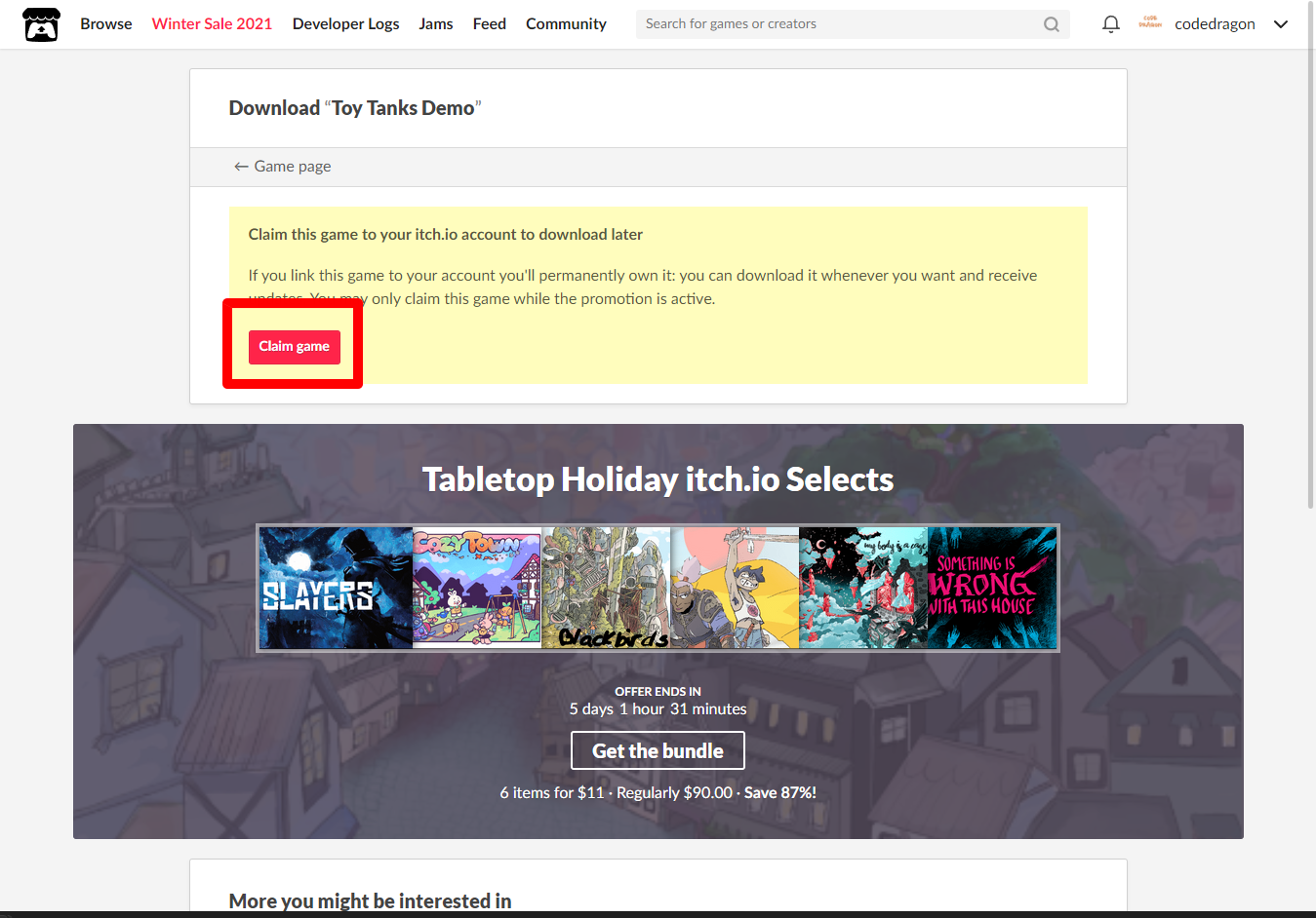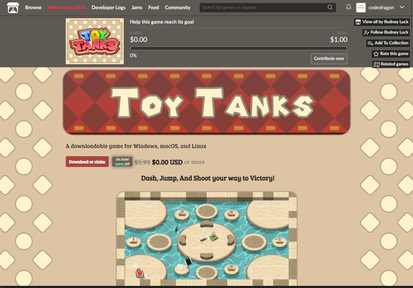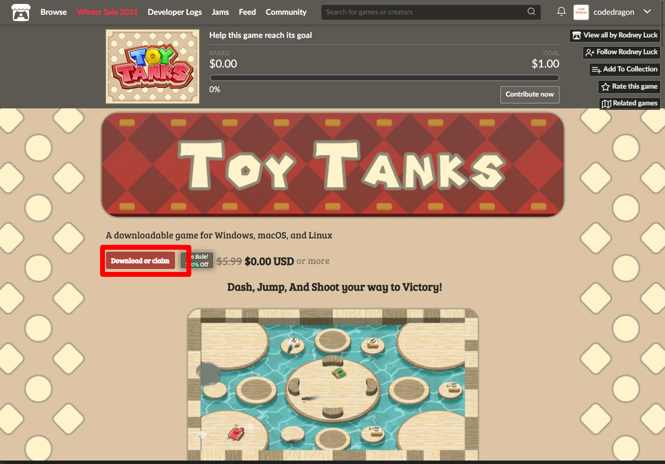 "Toy Tanks" 페이지에 있는 [Download or claim]을 클릭합니다.