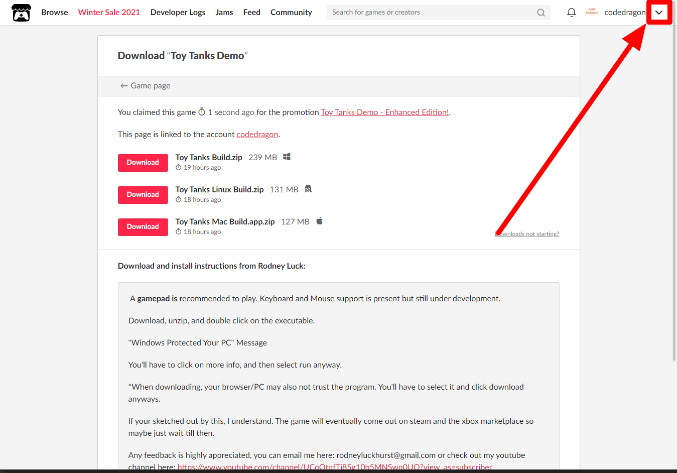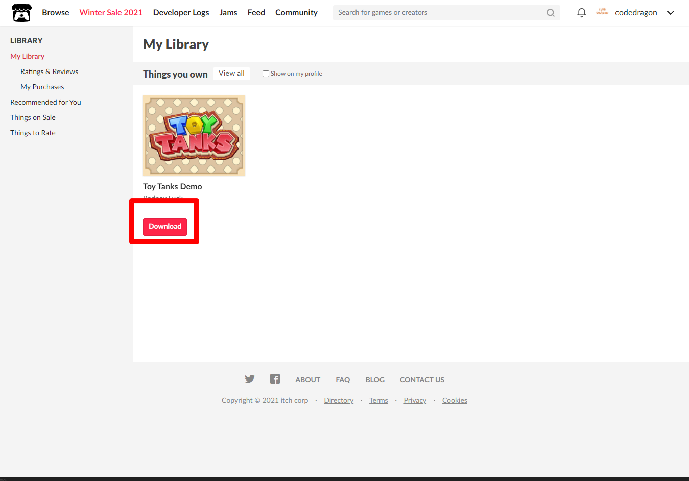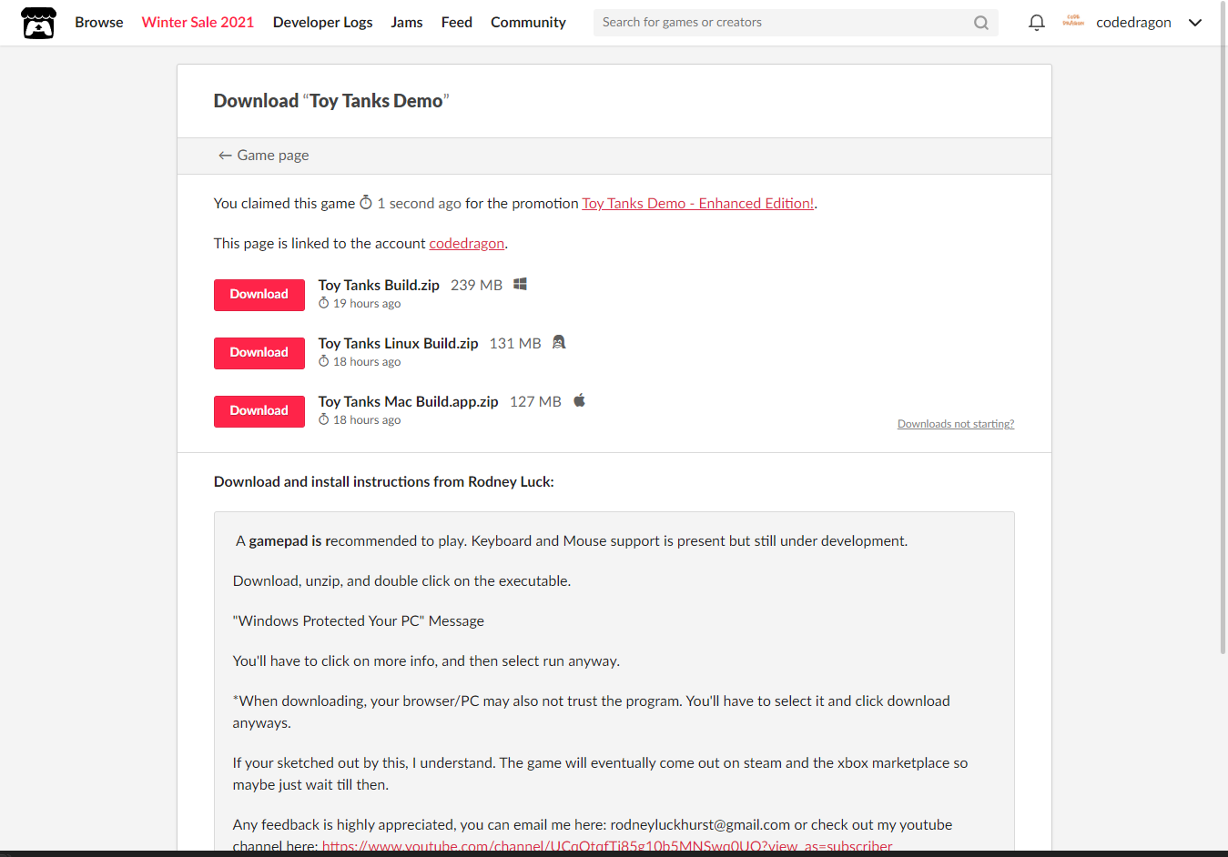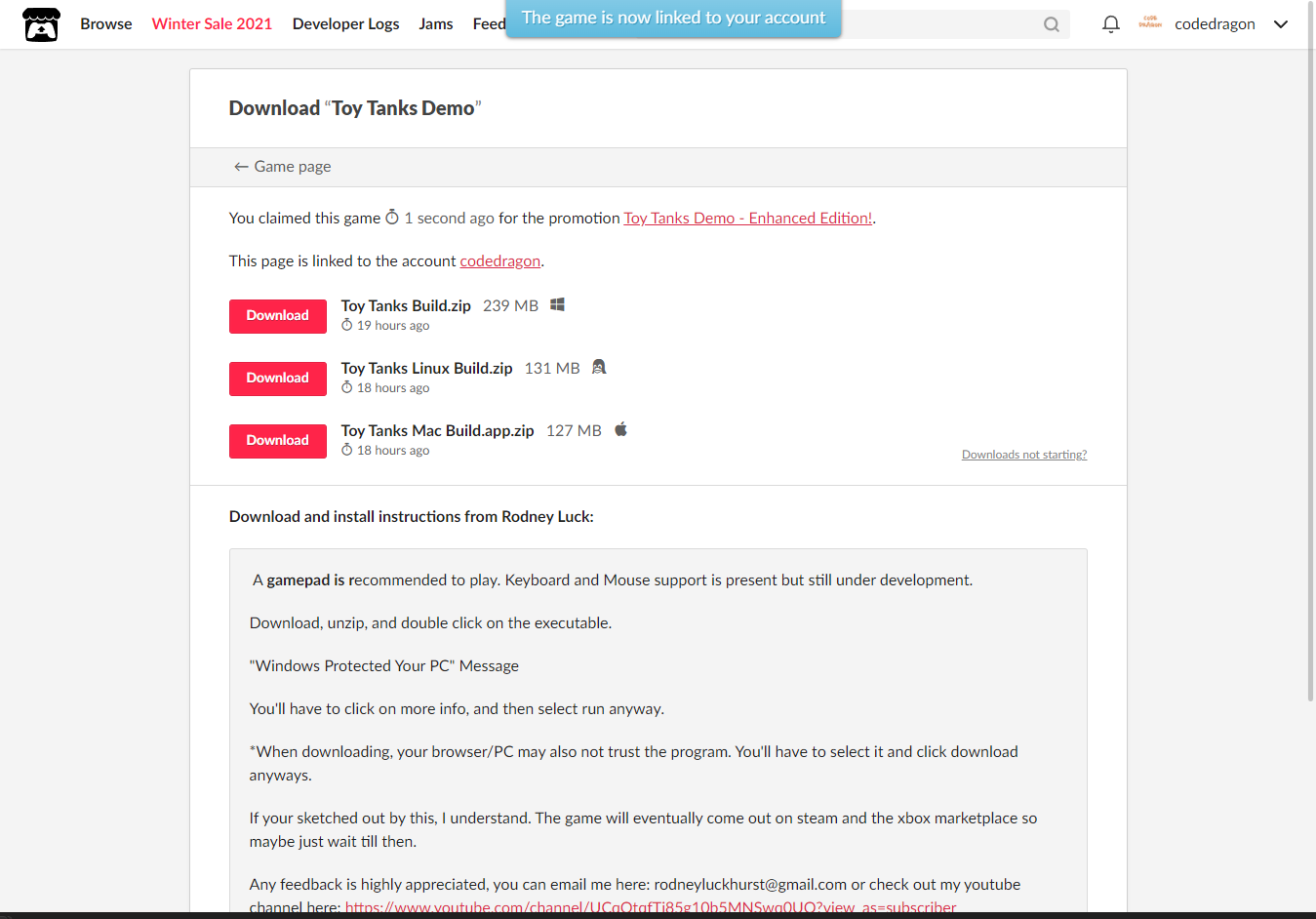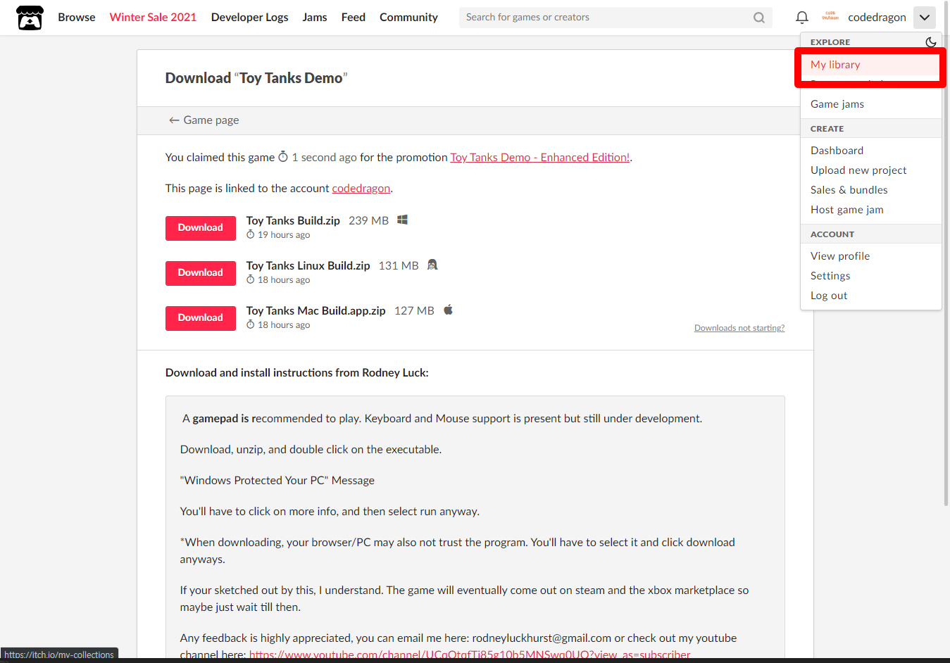 "Toy Tanks" 페이지에 있는 [Download or claim]을 클릭합니다.