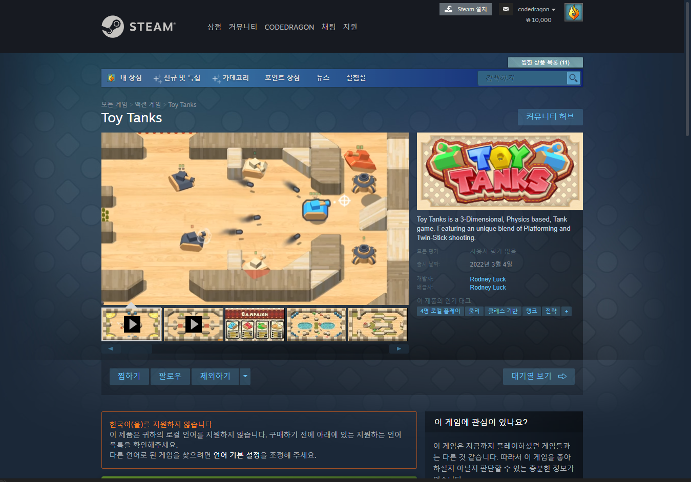 "Toy Tanks" 공식 페이지에 접속합니다.