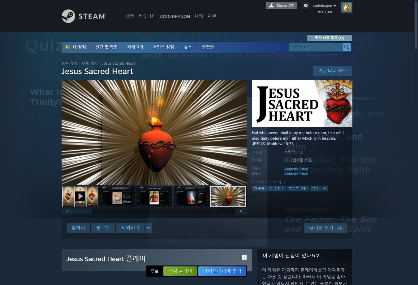 "Jesus Sacred Heart" 스팀 페이지 입니다.