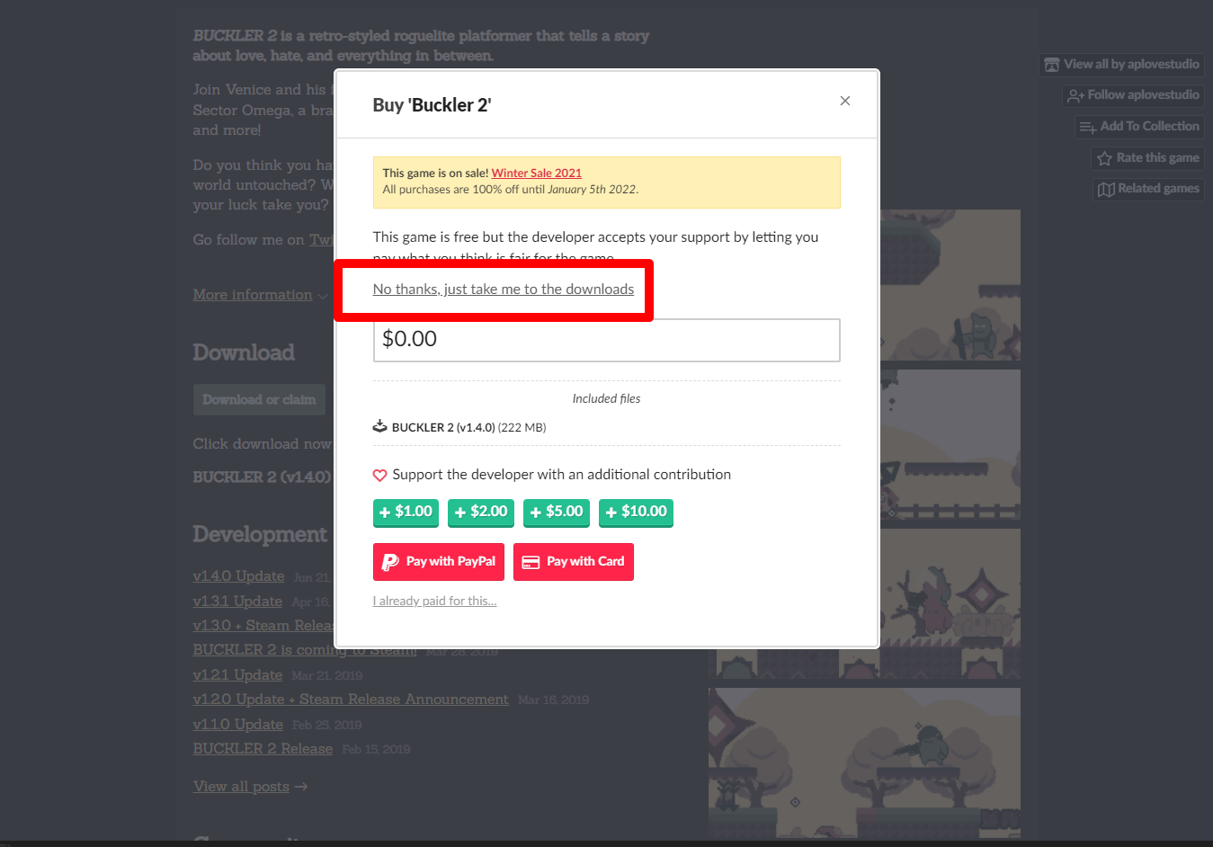 ₩4,400 -> ₩0(Free) Buckler 2 무료로 받기 영구소장 - itch.io 잇치 닷 아이오 한시적 무료 소장하기