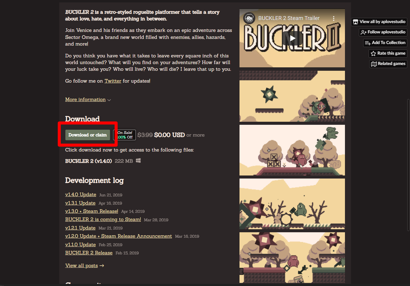"Buckler 2" 페이지를 조금내려서 [Download or claim]을 클릭합니다.