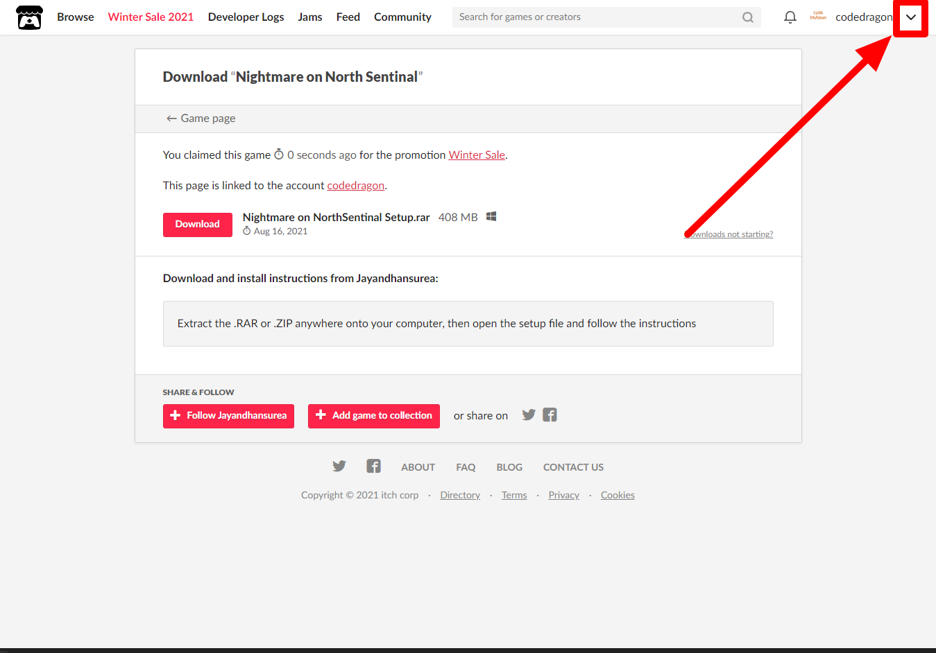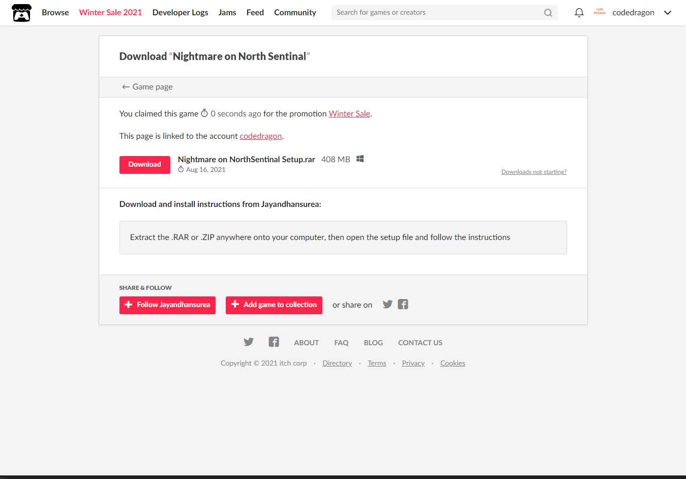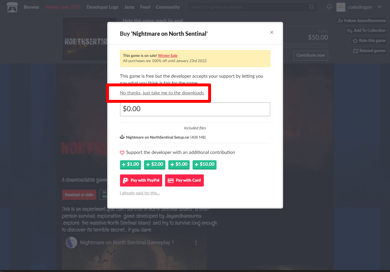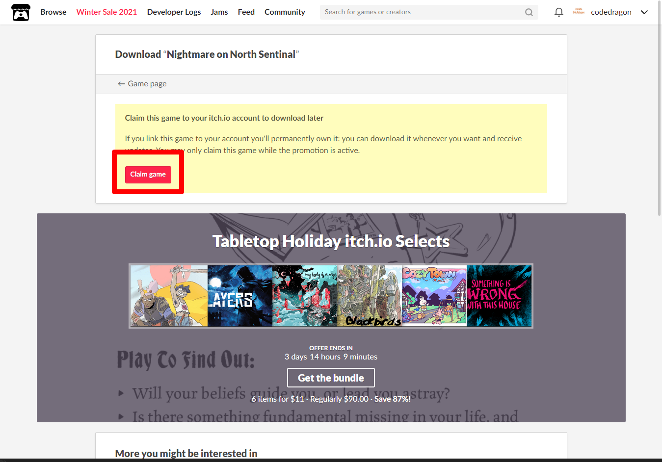 "Nightmare on North Sentinal" 페이지에 있는 [Download or claim]을 클릭합니다.