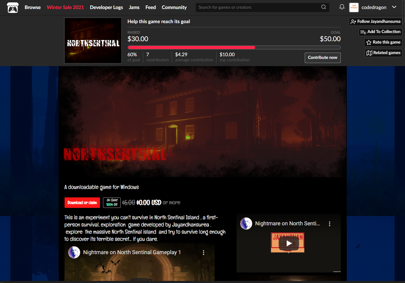 "Nightmare on North Sentinal" 해당 항목에 있는 [Download] 버튼을 클릭하면 게임의 설치파일을 다운받을 수 있습니다.
