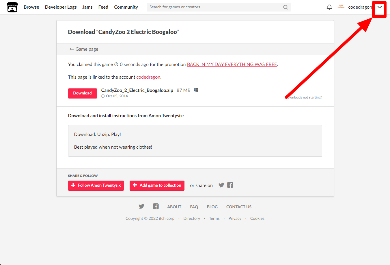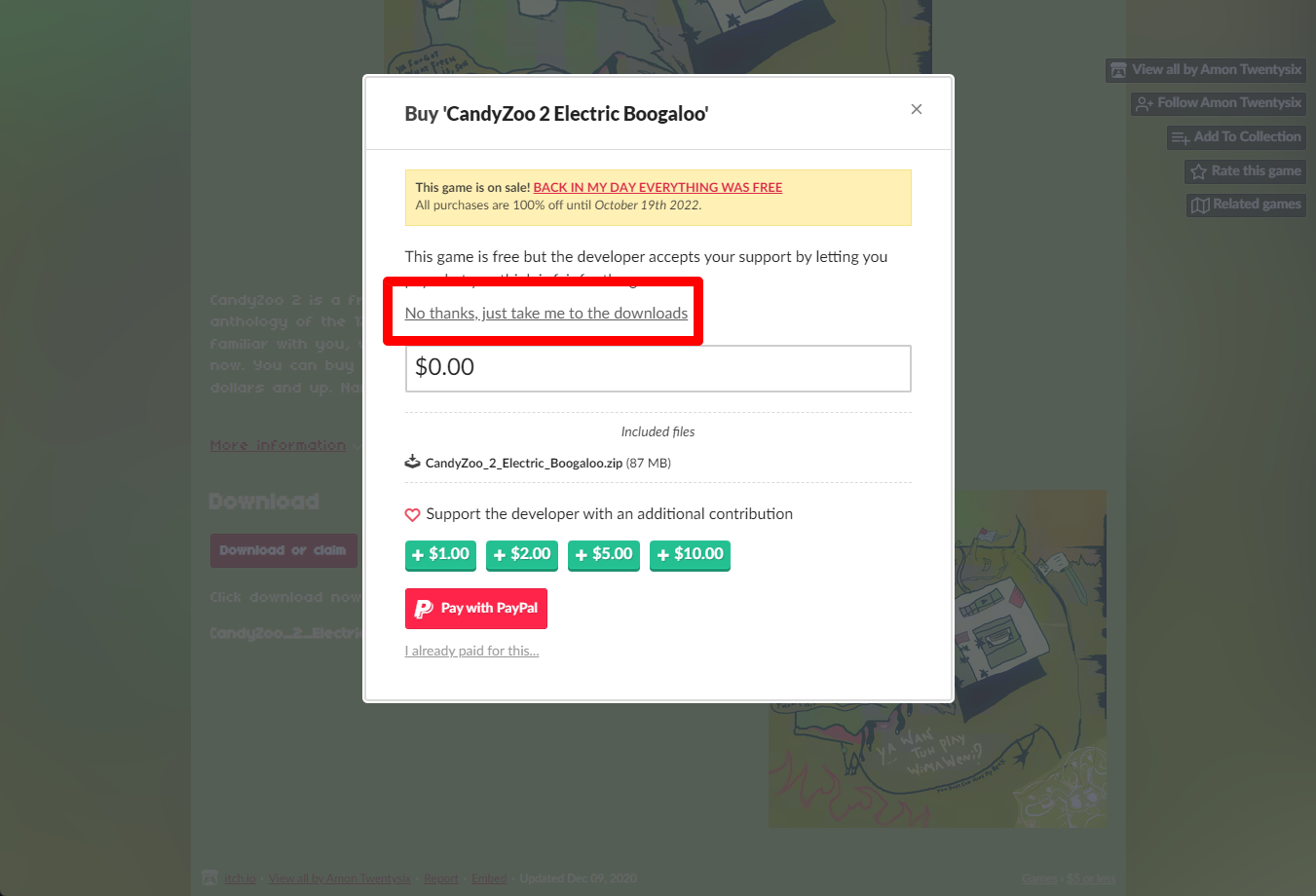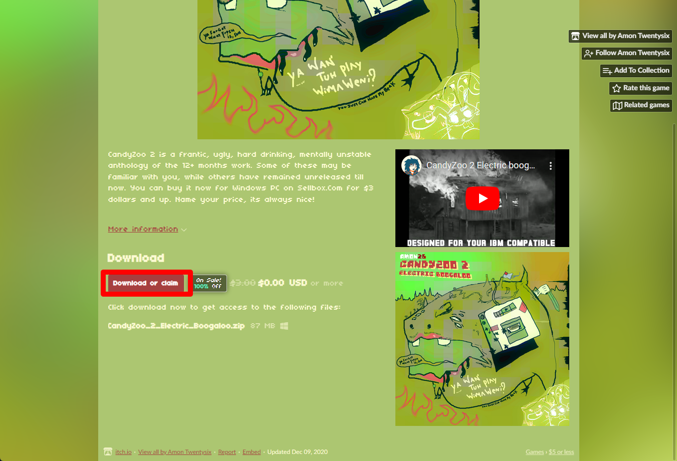 "CandyZoo 2 Electric Boogaloo" 페이지를 내려서 [Download or claim]을 클릭합니다.