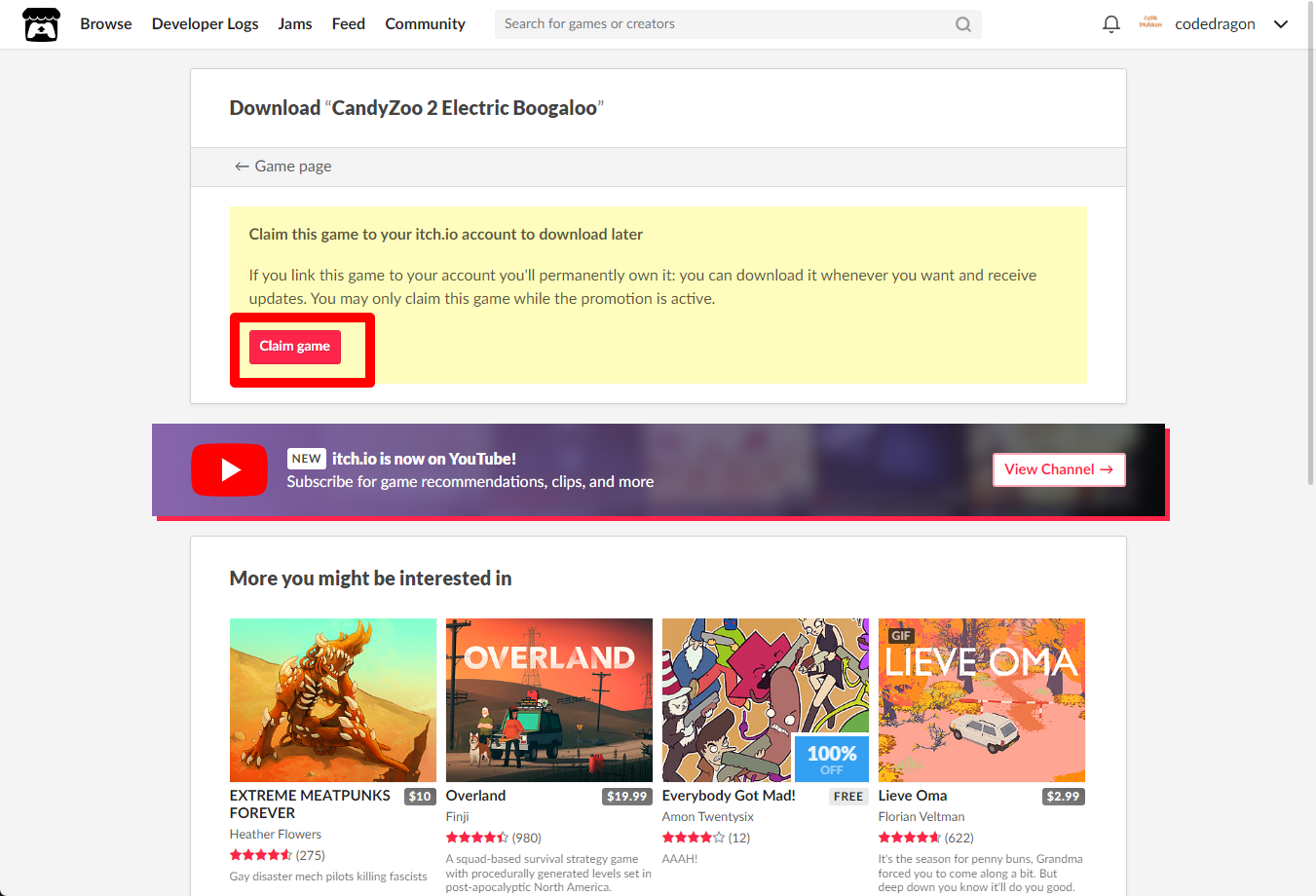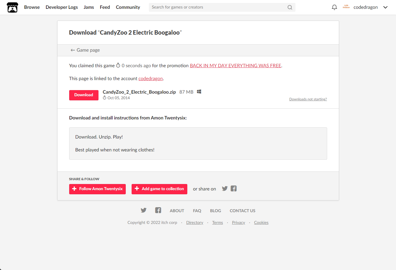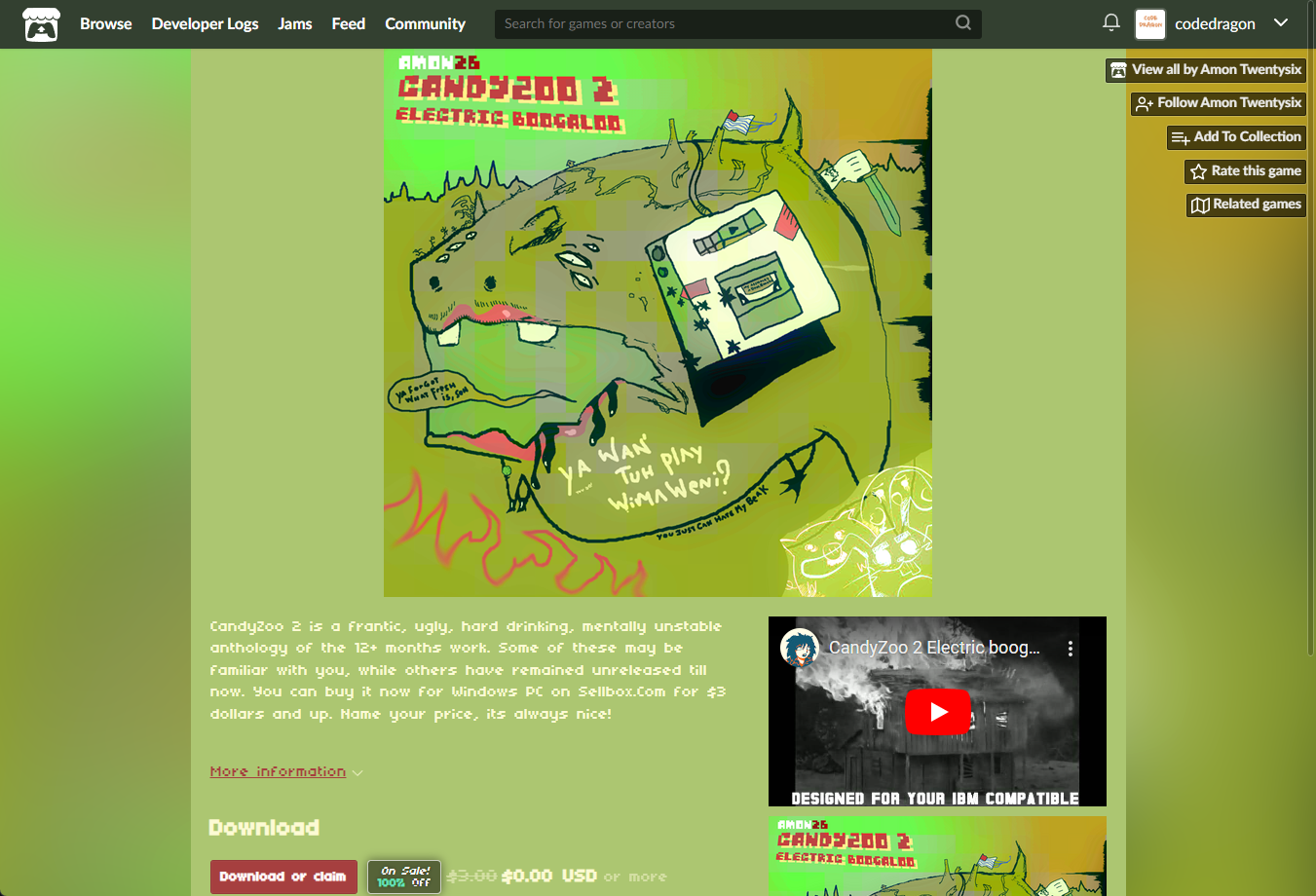 "CandyZoo 2 Electric Boogaloo" 페이지를 내려서 [Download or claim]을 클릭합니다.
