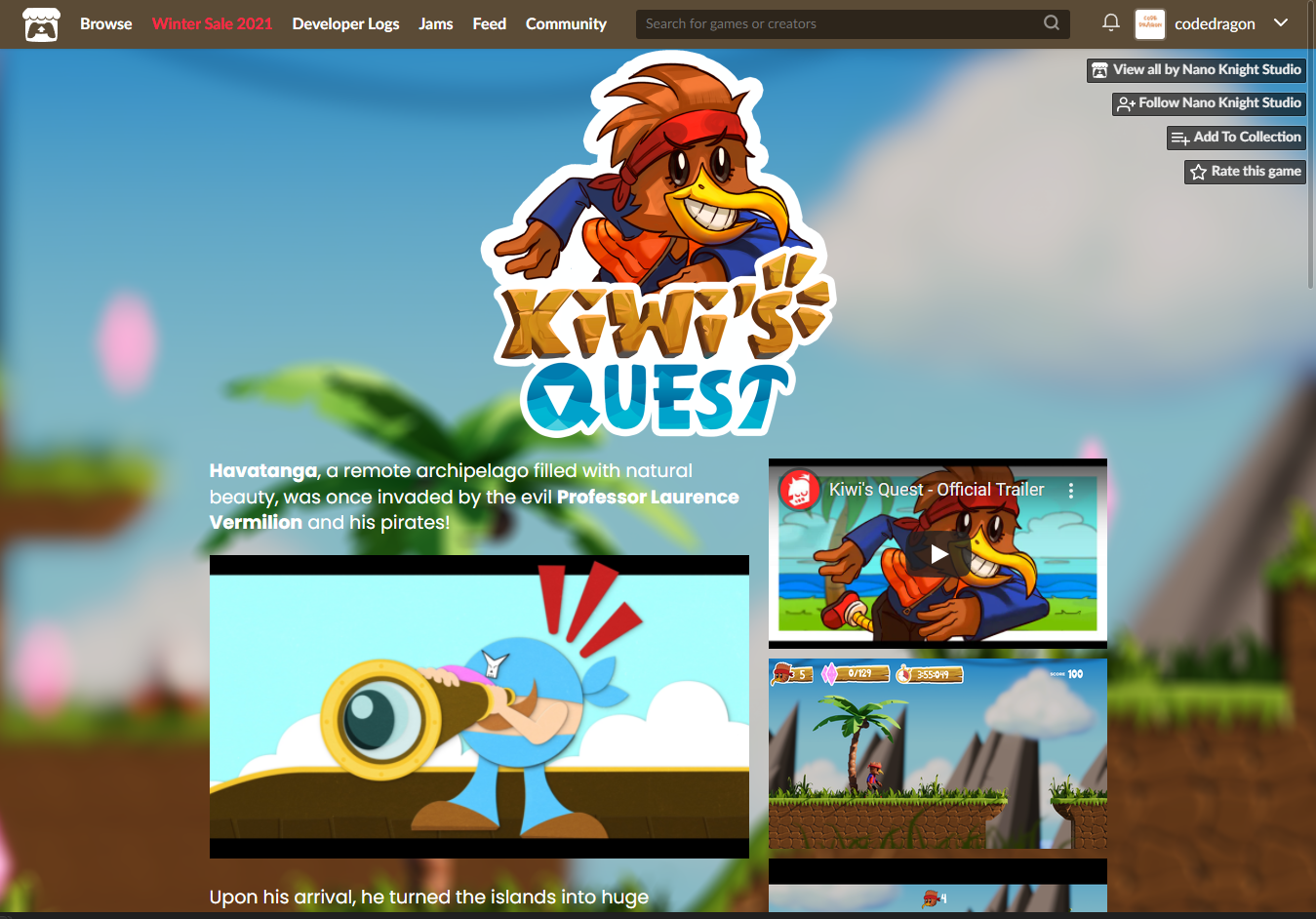 "Kiwi's Quest" 공식 페이지에 접속합니다.