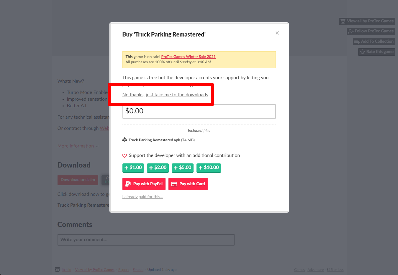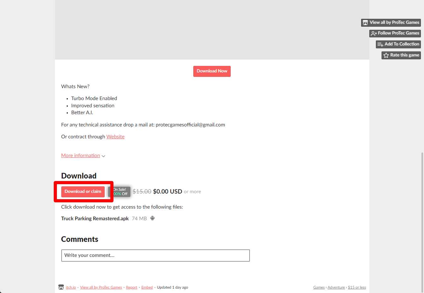 "Truck Parking Remastered" 페이지에 있는 [Download or claim]을 클릭합니다.