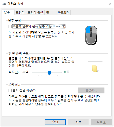 "마우스 속성"창 오픈됩니다.