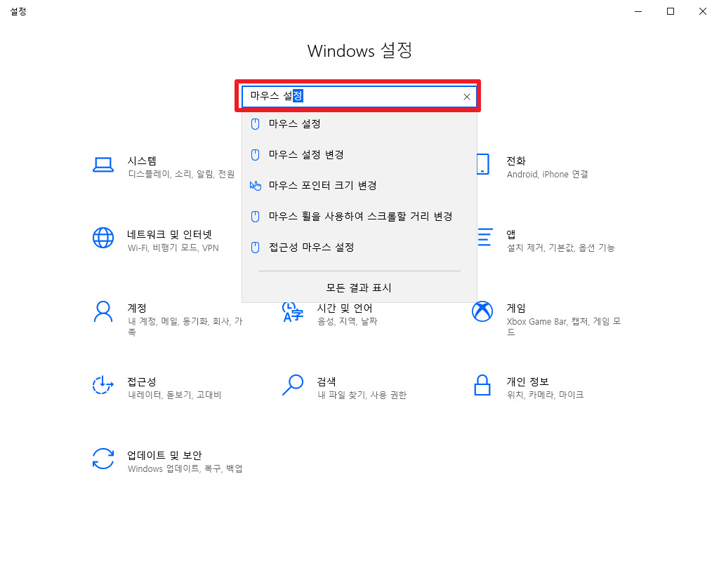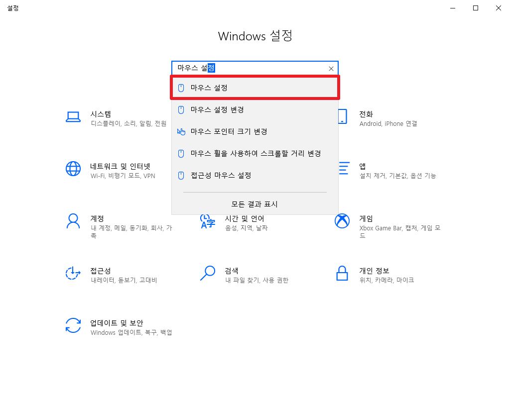 "마우스 설정" 으로 검색합니다.