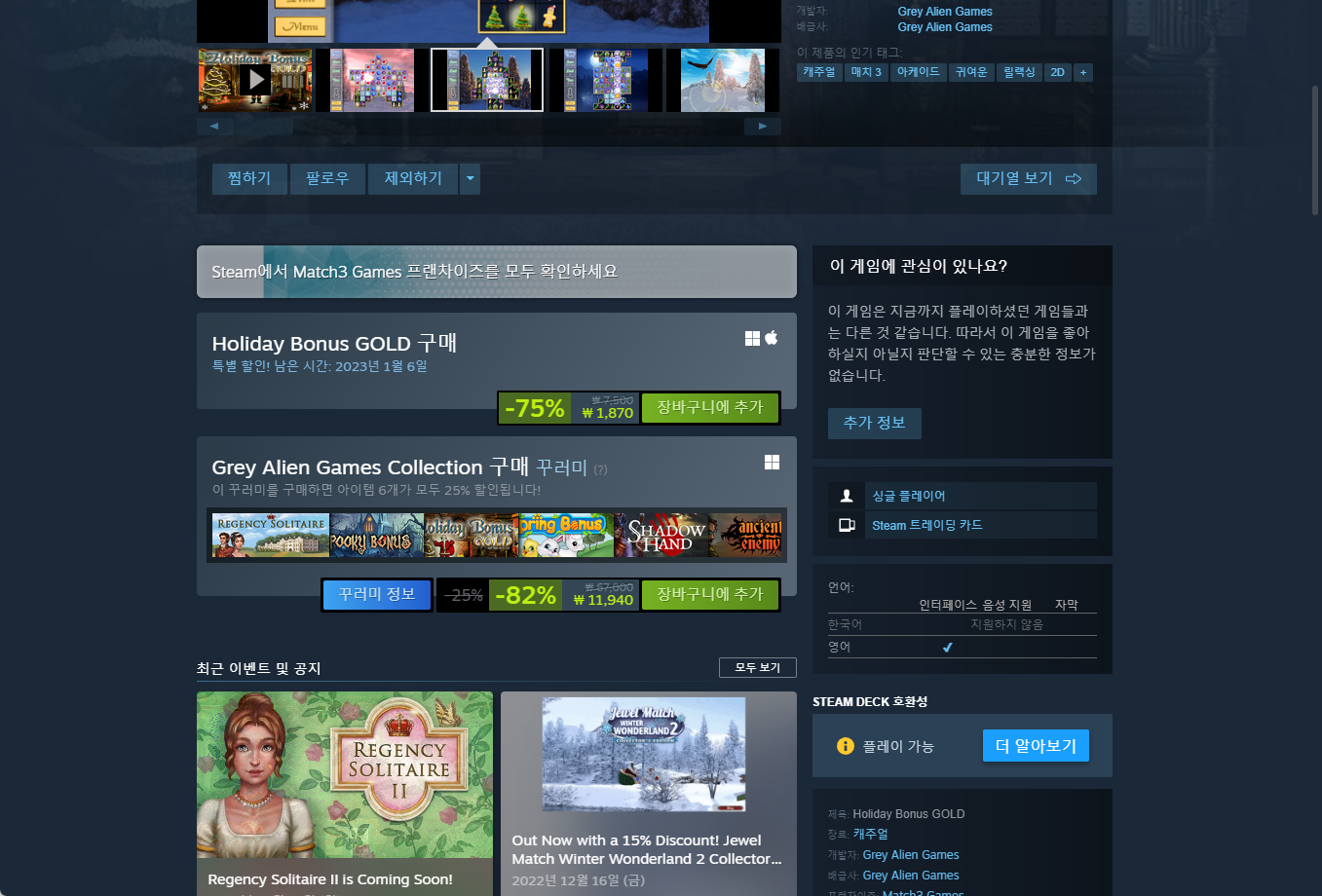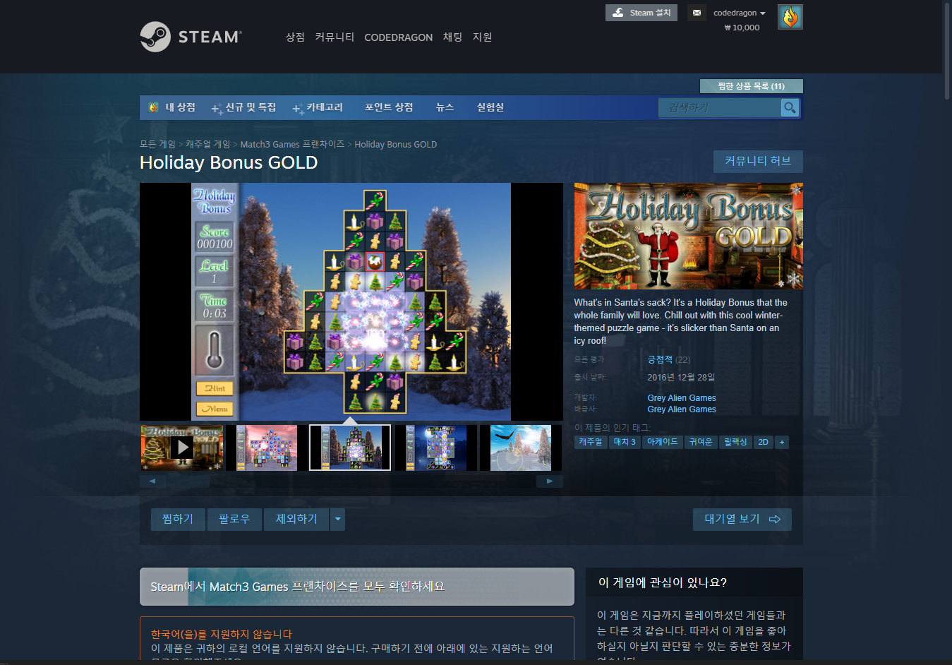 "Holiday Bonus GOLD" 게임 페이지 - Steam 스팀