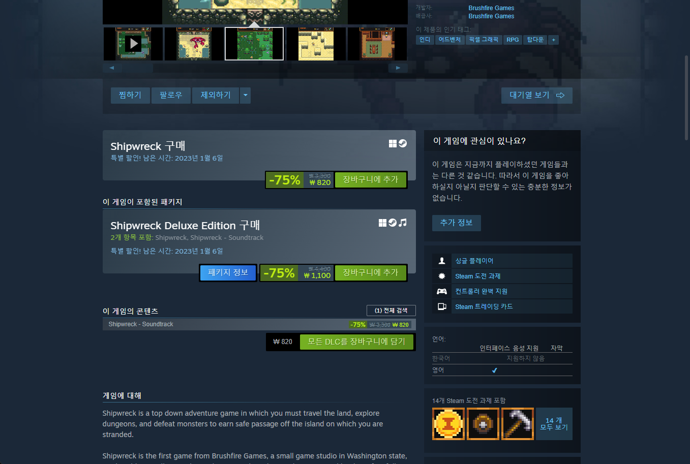 "Shipwreck" 스팀 Steam 페이지