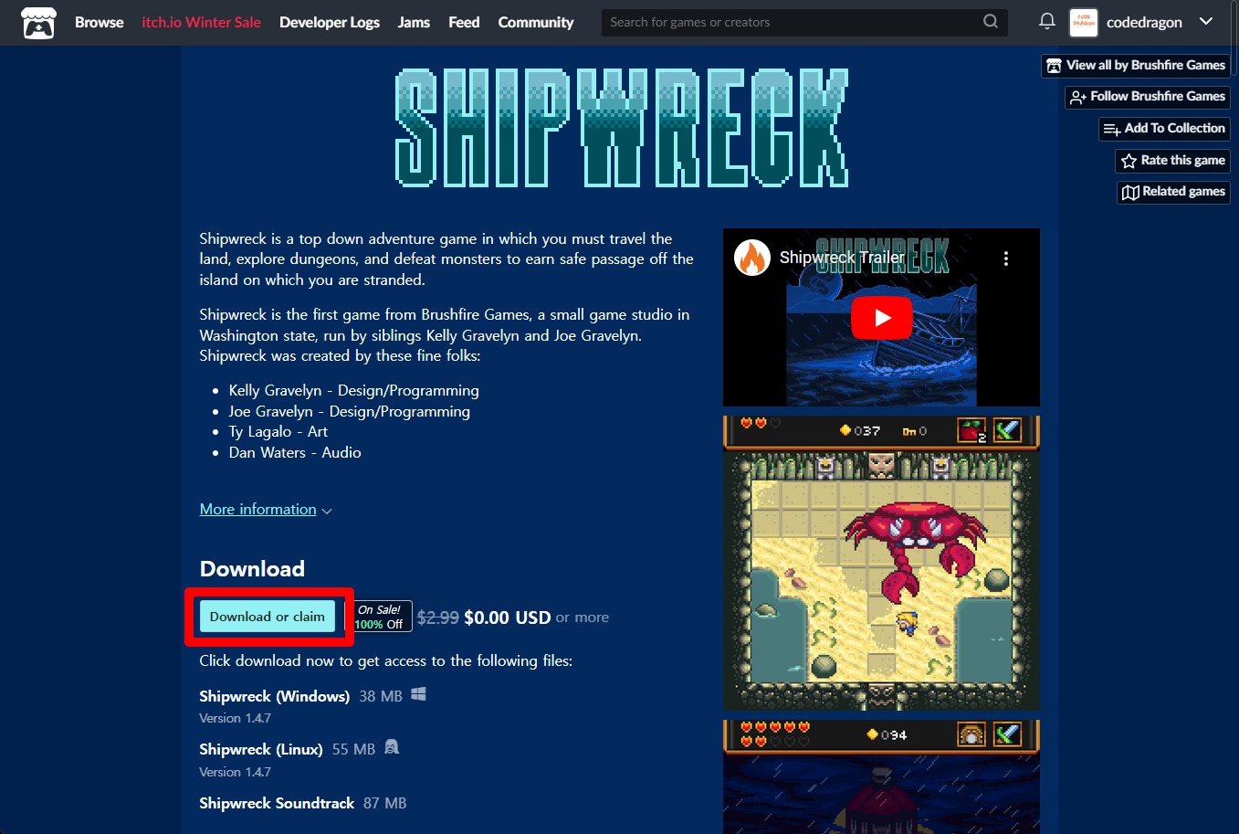 "Shipwreck" 페이지에 있는 [Download or claim]을 클릭합니다.