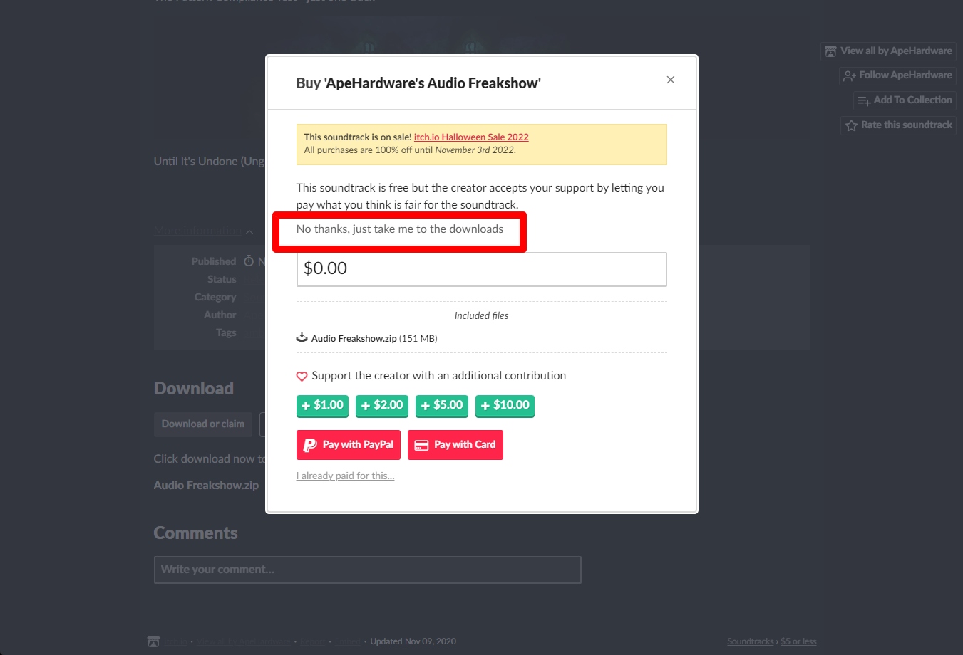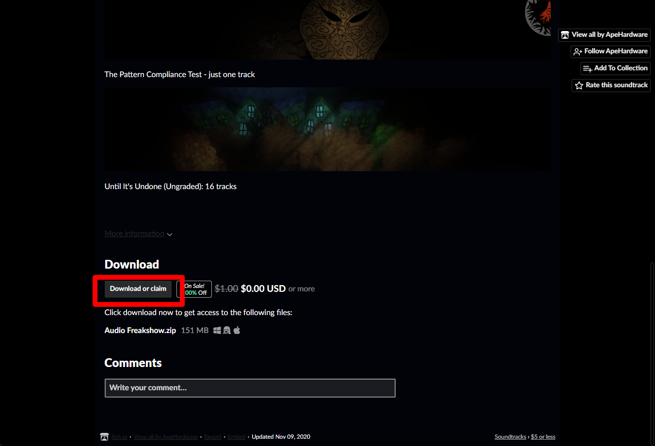 "ApeHardware's Audio Freakshow" 페이지 내려서 [Download or claim]을 클릭합니다.