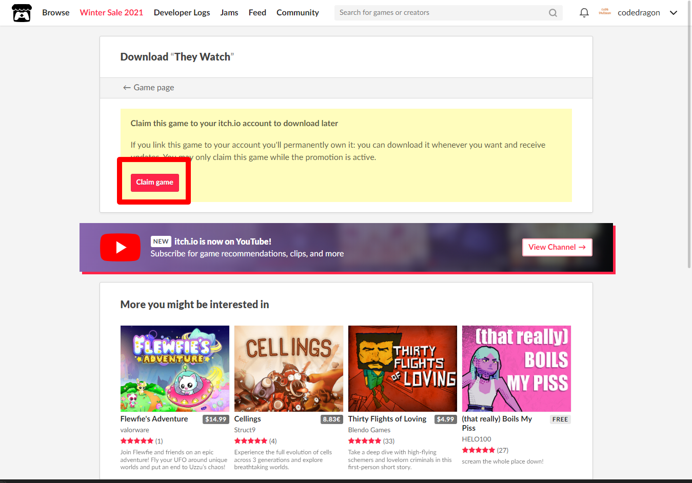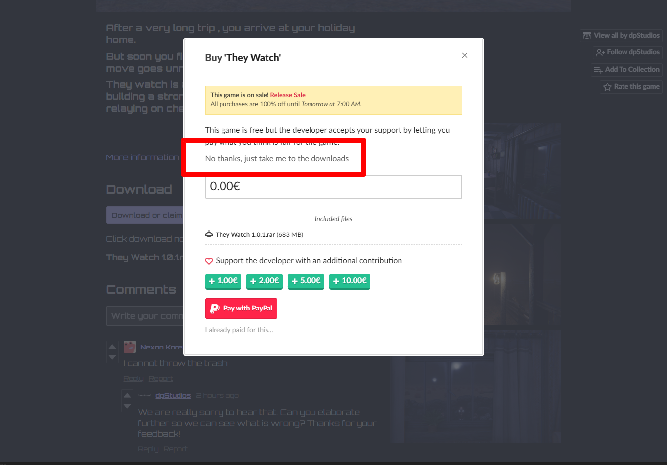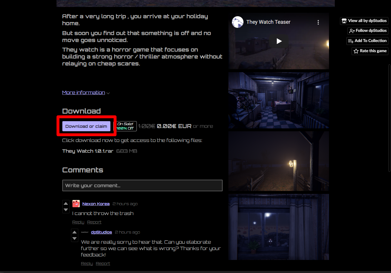 "They Watch" 페이지에 있는 [Download or claim]을 클릭합니다.