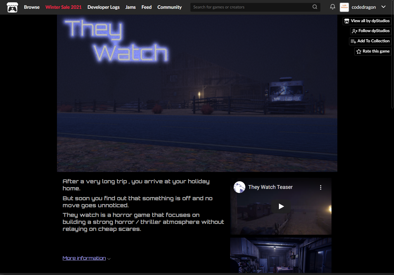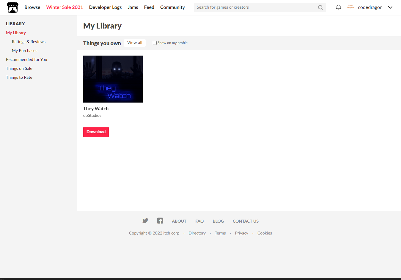 "My Lirary"에서 방금 받은 "They Watch" 게임 항목을 확인할 수 있습니다.