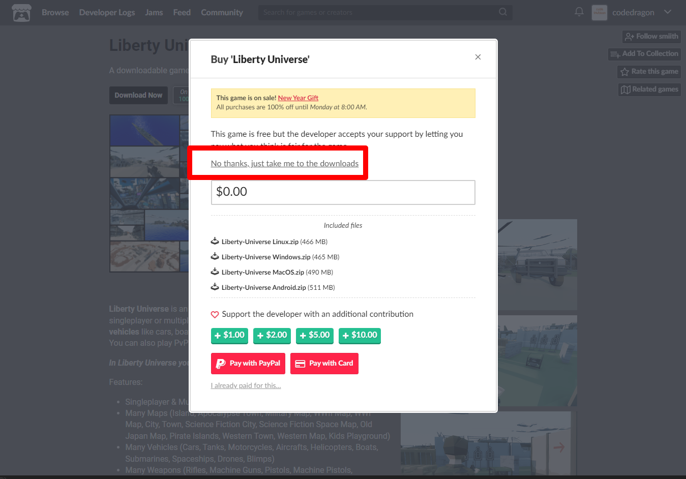 "Liberty Universe" 페이지에 있는 [Download or claim]을 클릭합니다.