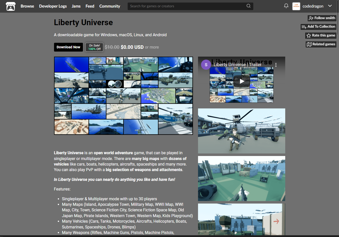 ₩11,980 -> ₩0(Free) 리버티 유니버스 무료로 받기 영구소장 - itch.io 잇치 닷 아이오 한시적 무료 소장하기