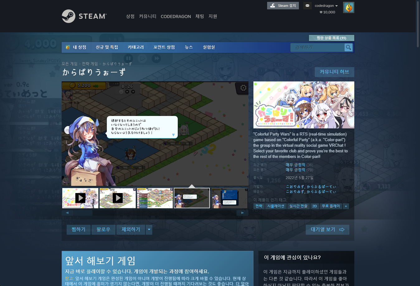 "からぱりうぉーず" 스팀 페이지 입니다.