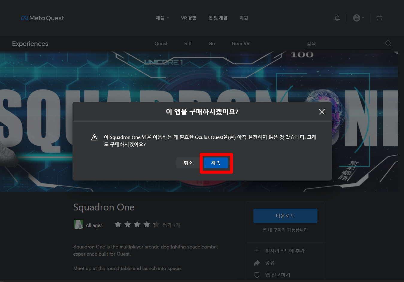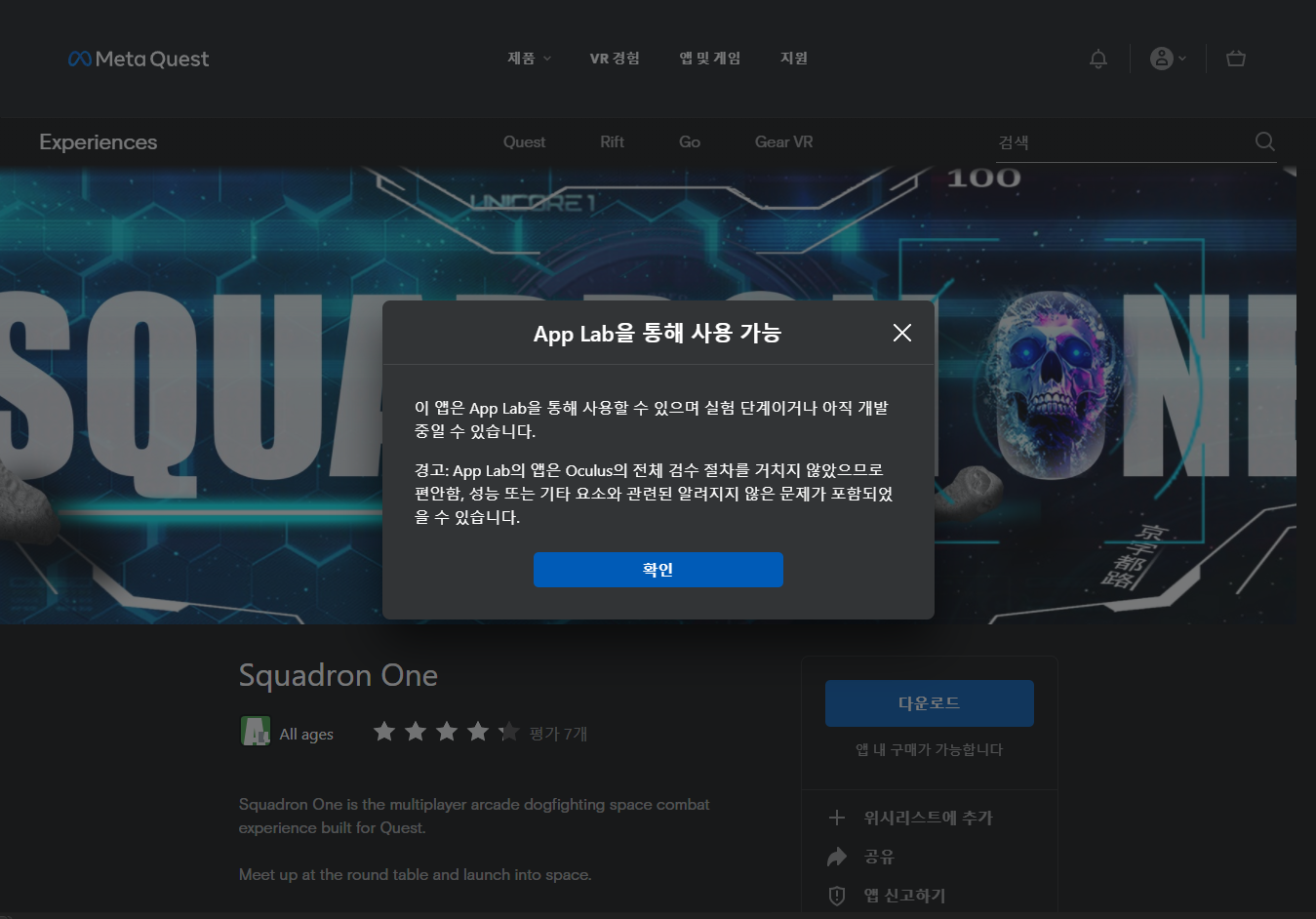 "Squadron One" 게임페이지에 있는 [다운로드] 버튼 클릭합니다.