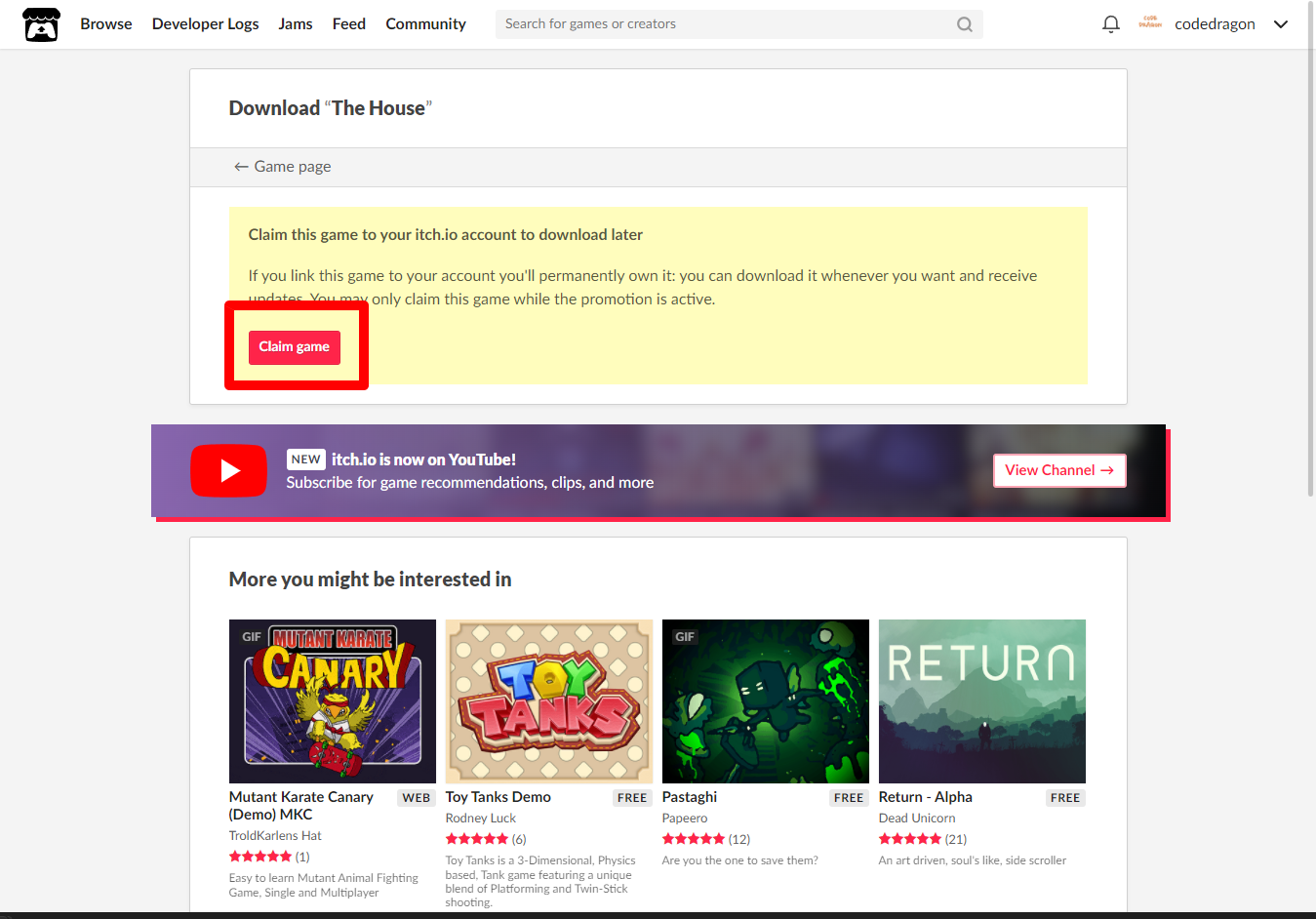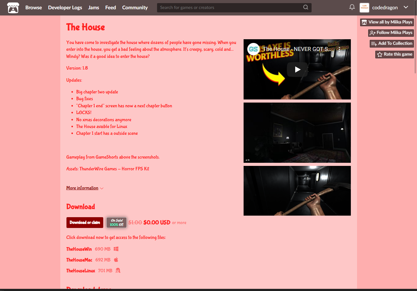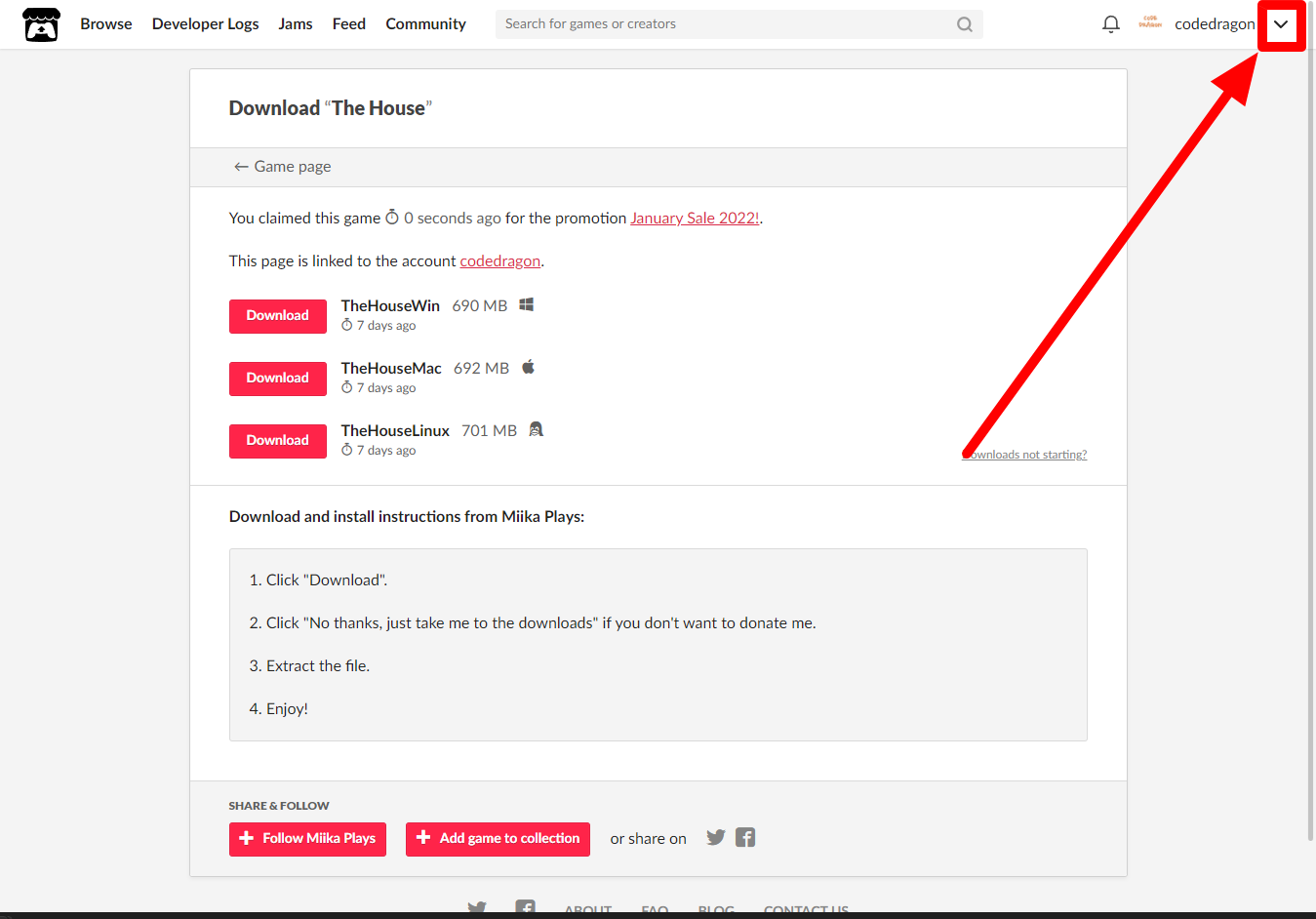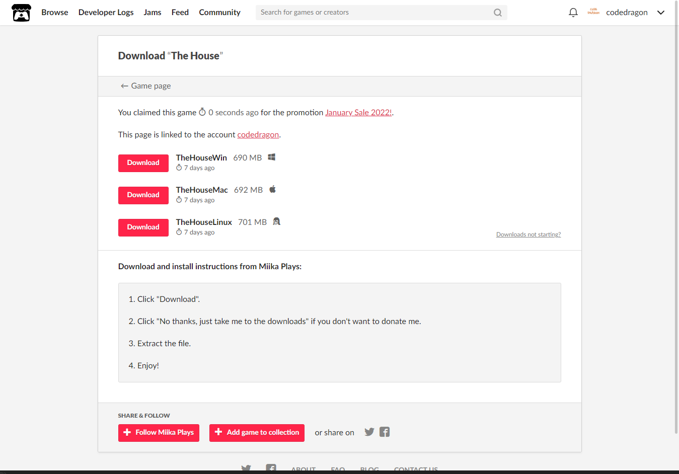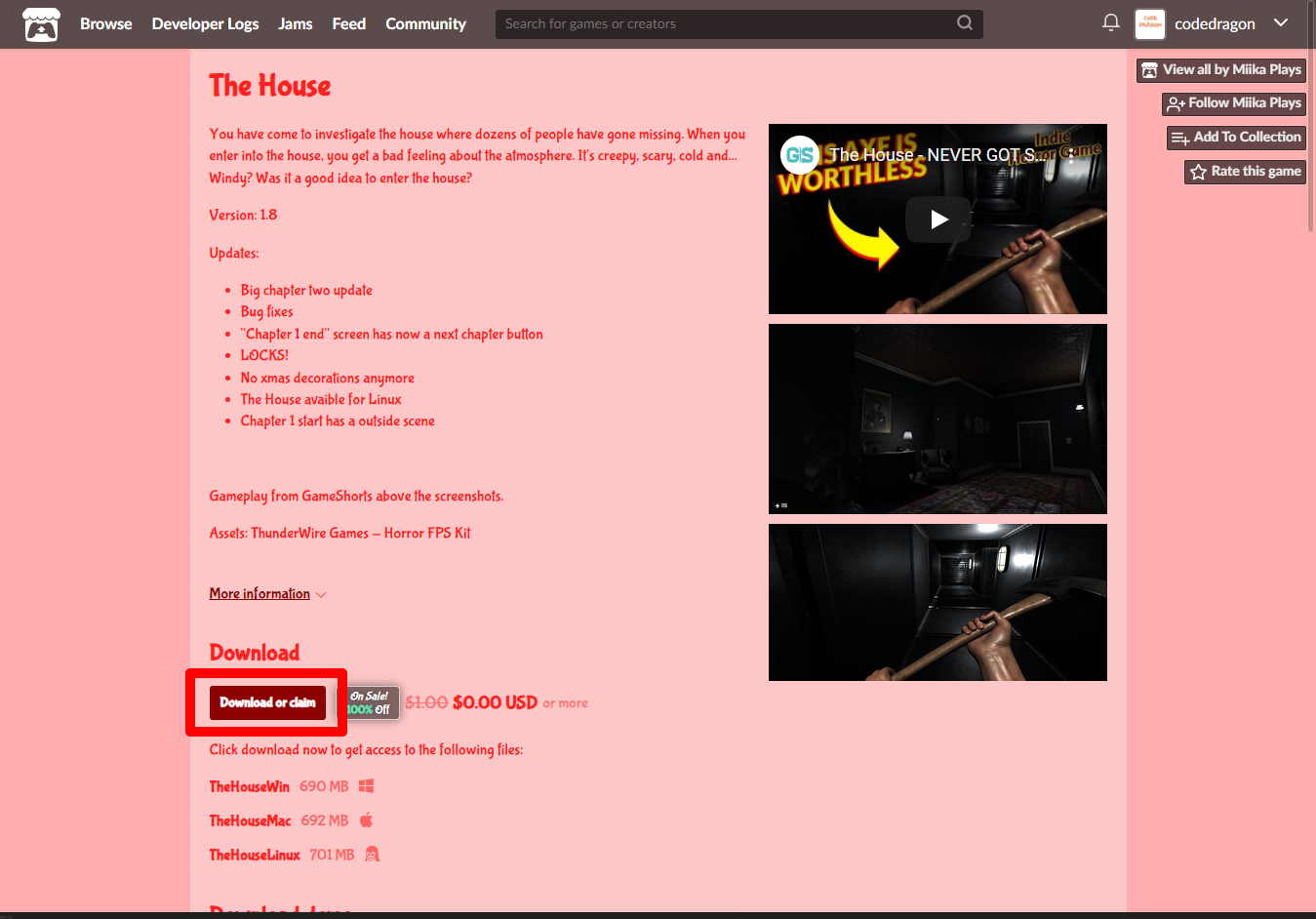 "The House" 페이지에 있는 [Download or claim]을 클릭합니다.