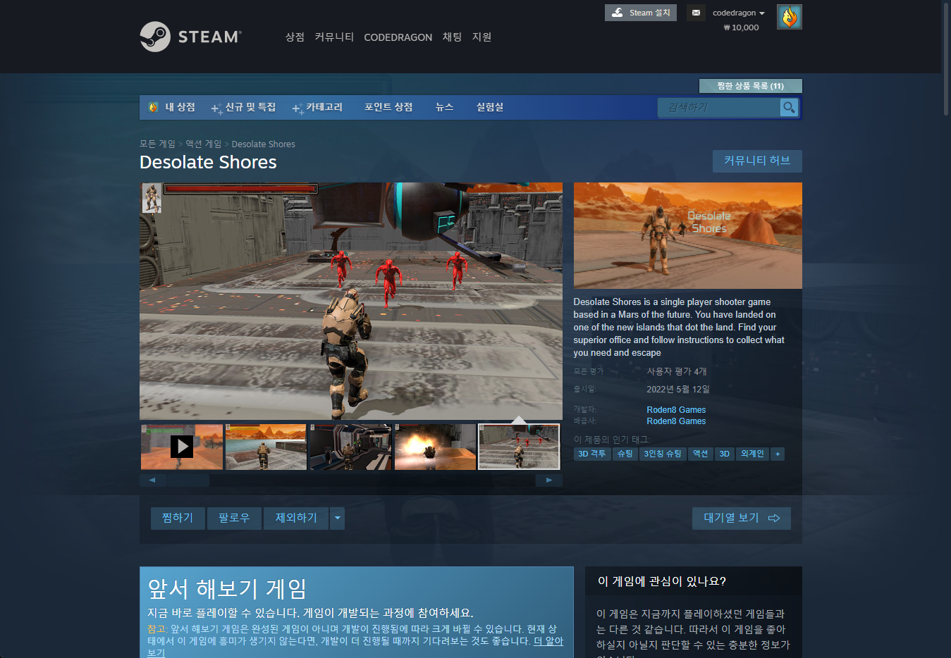 "Desolate Shores" 스팀 페이지 입니다.