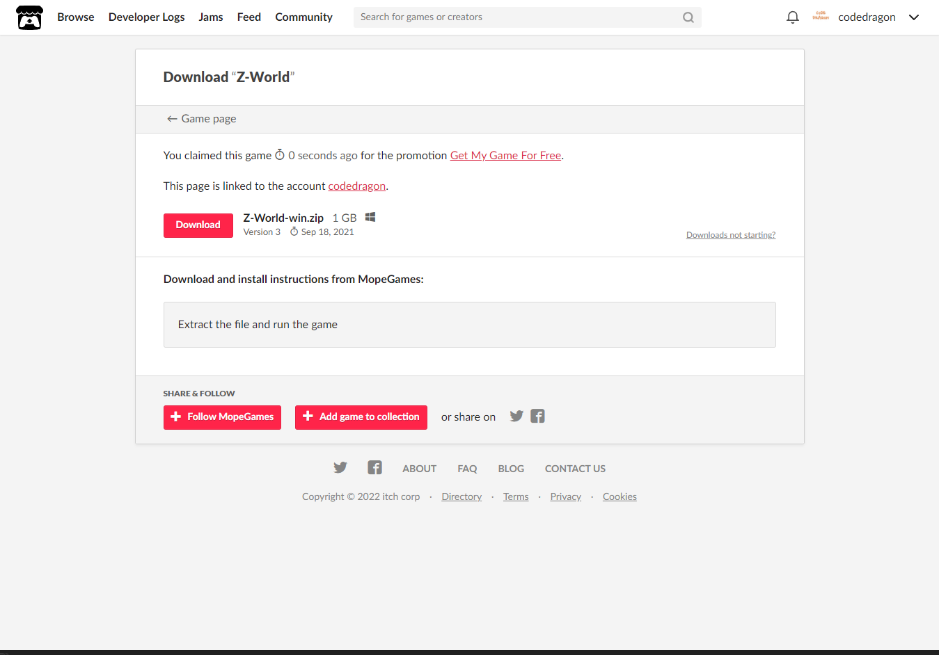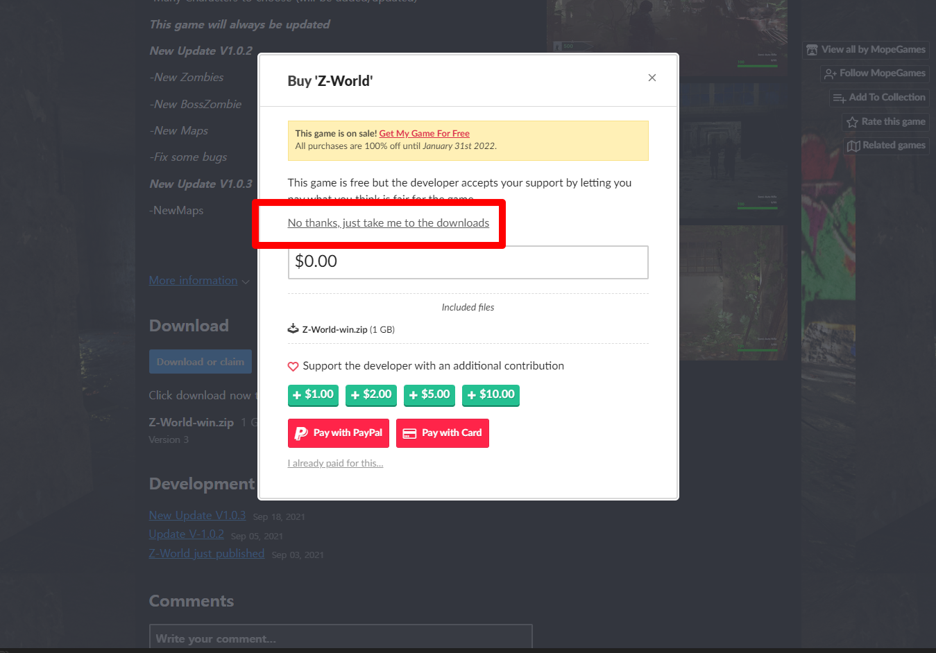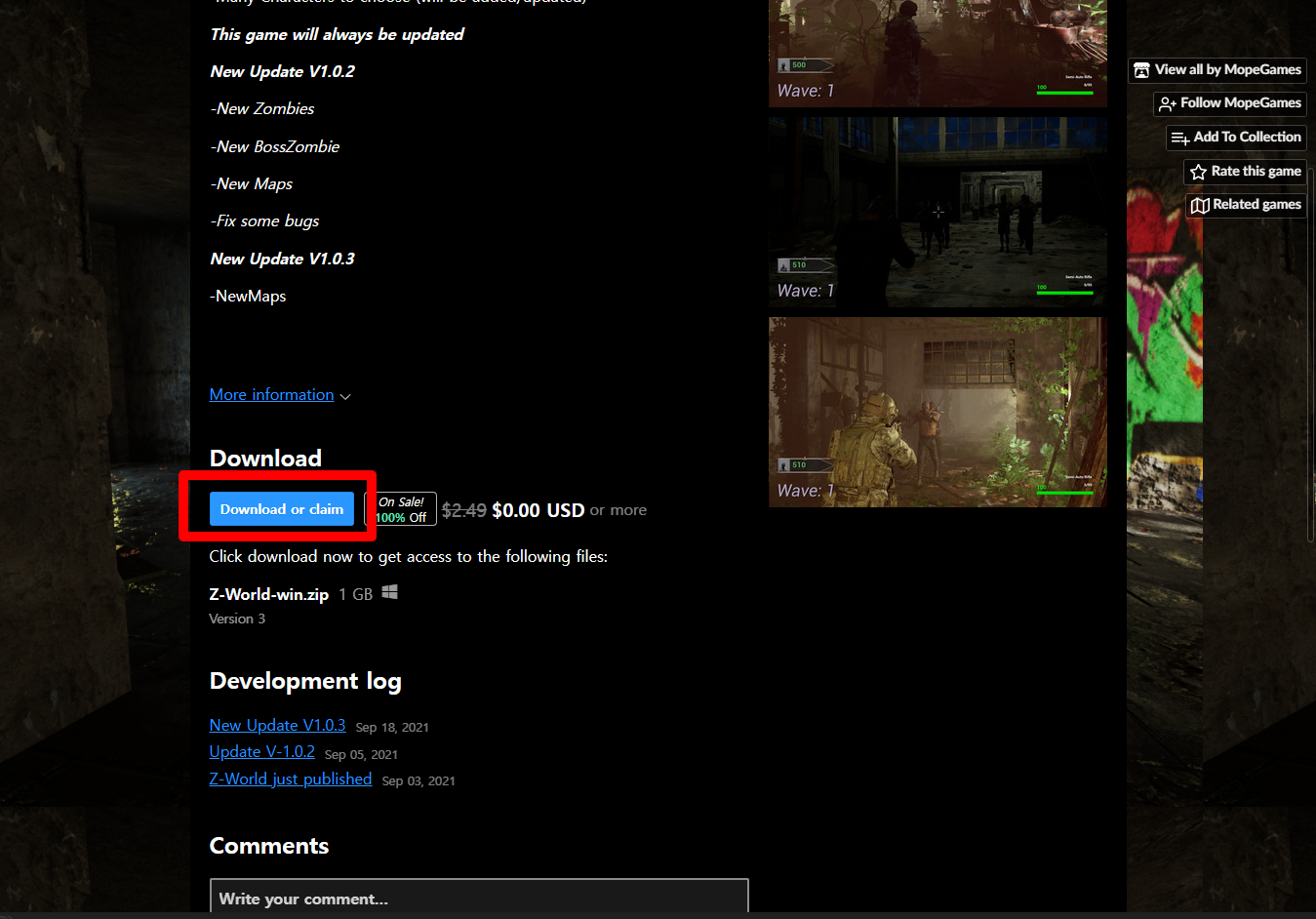 "Z-World" 페이지를 아래로 조금 내린 후 [Download or claim]을 클릭합니다.