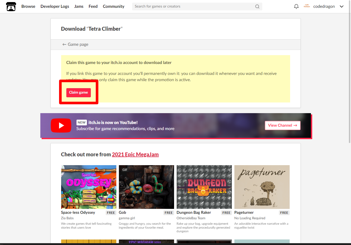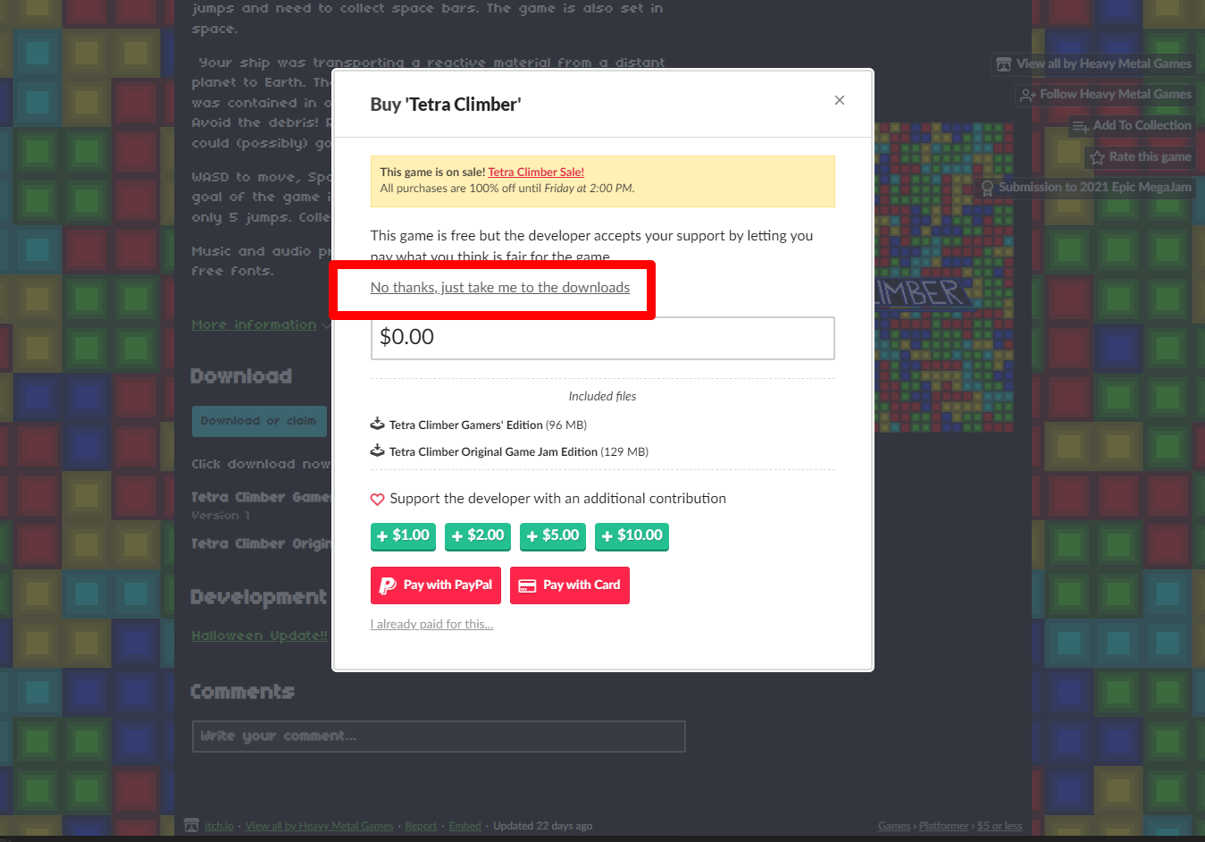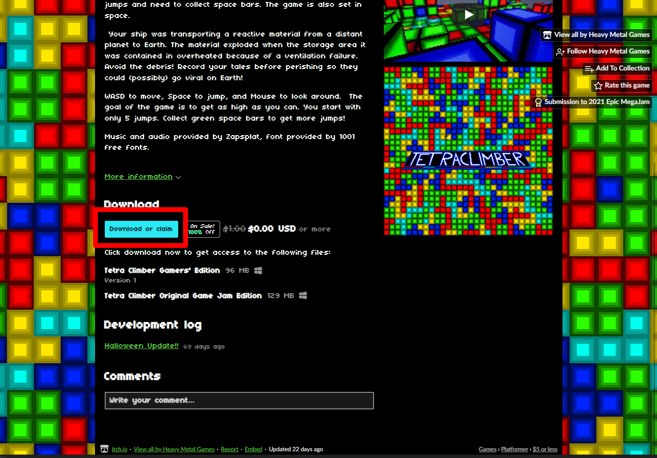 "Tetra Climber" 페이지를 아래로 내려서 [Download or claim]을 클릭합니다.