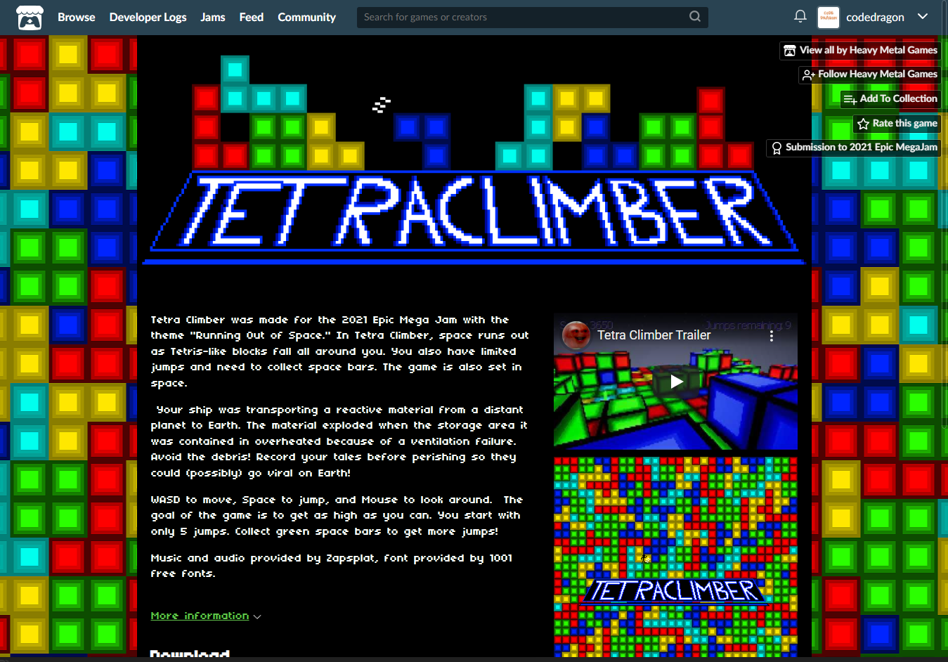 "Tetra Climber" 해당 항목에 있는 [Download] 버튼을 클릭하면 게임의 설치파일을 다운받을 수 있습니다.
