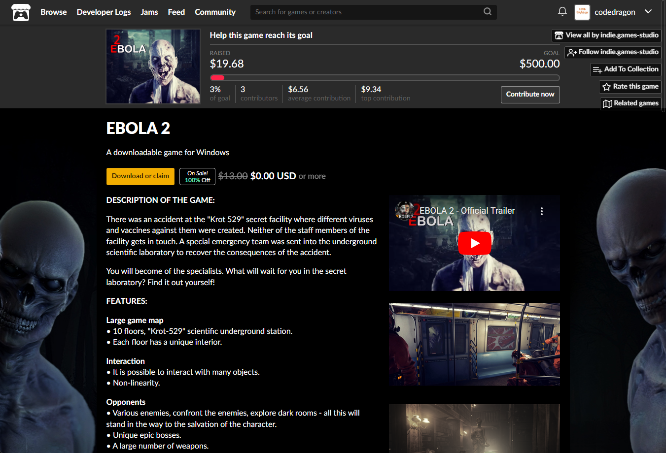 ₩18,356 -> ₩0(Free) EBOLA 2 에볼라 2 무료로 받기 영구소장 - itch.io 잇치 닷 아이오 한시적 무료 소장하기