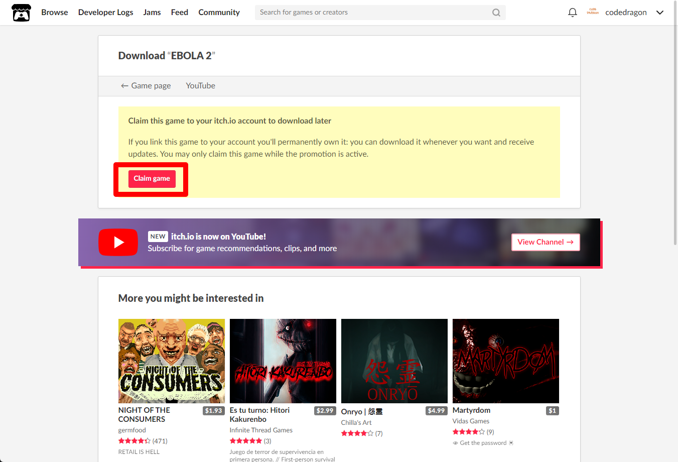 "EBOLA 2" 페이지에 있는 [Download or claim]을 클릭합니다.